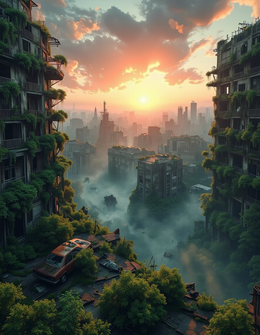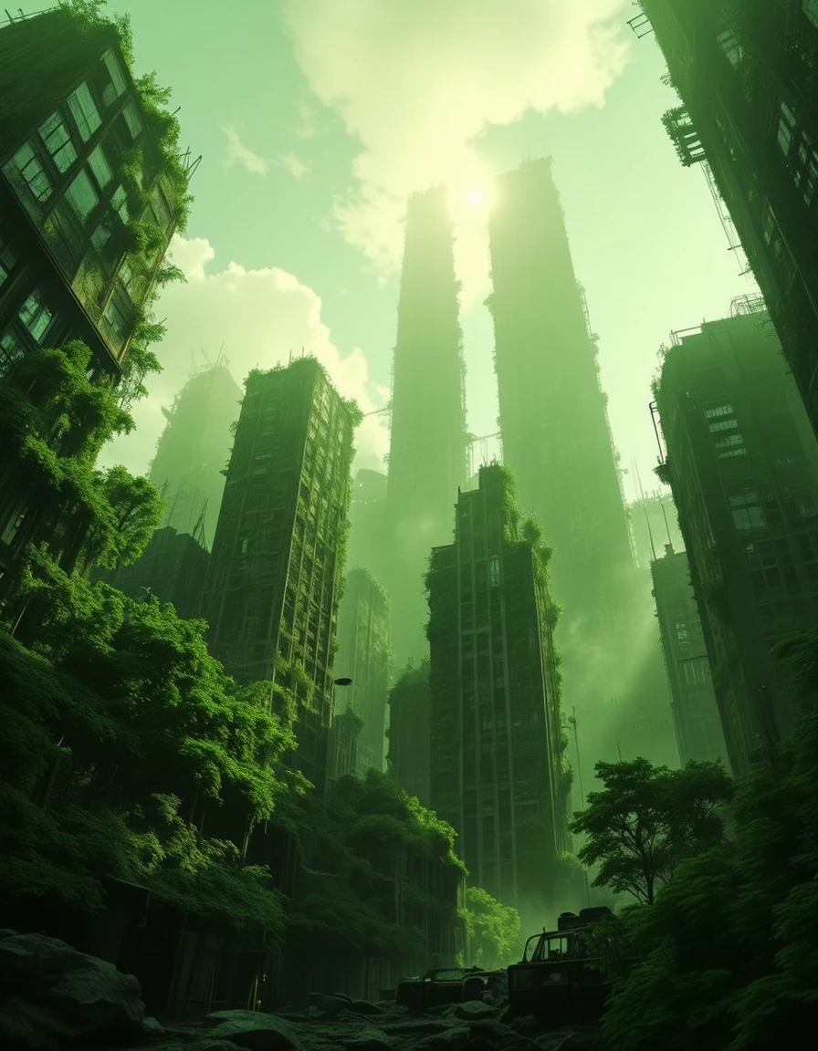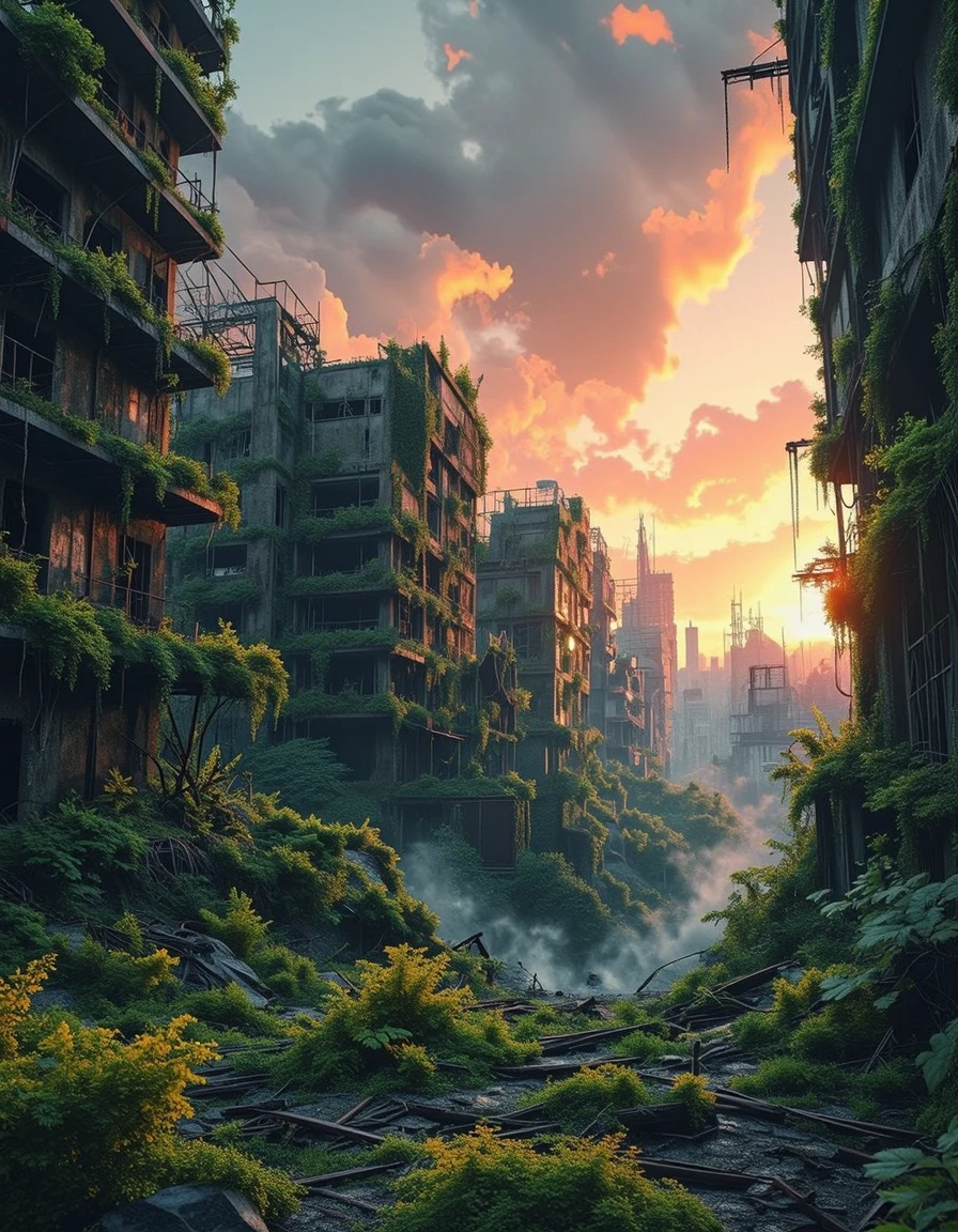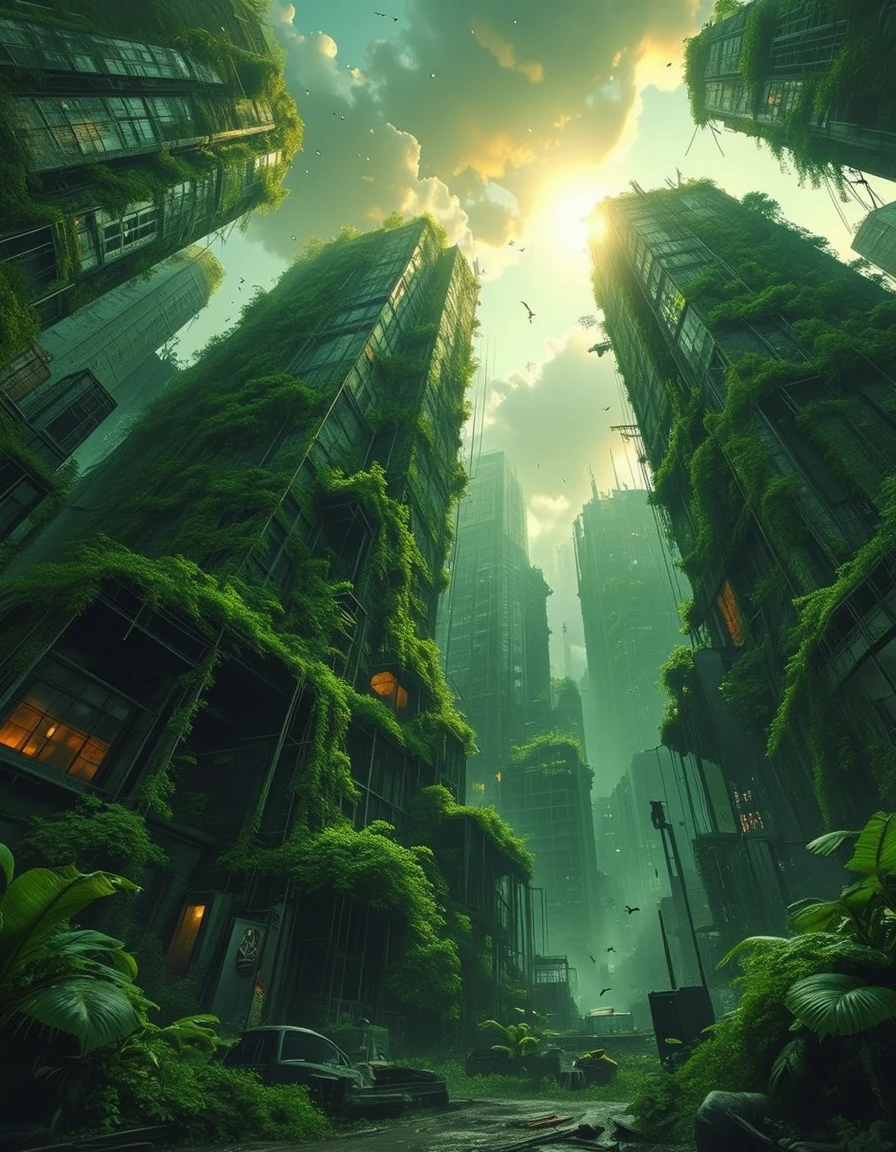 Nature is taking back its own spaces, and launches an invasion over urban hotspots through new and unexpected green oases.buildings are covered in moss, grass and plants growing through the concrete cracks of the asphalt. Cars, robots and anything metal is left rusted.