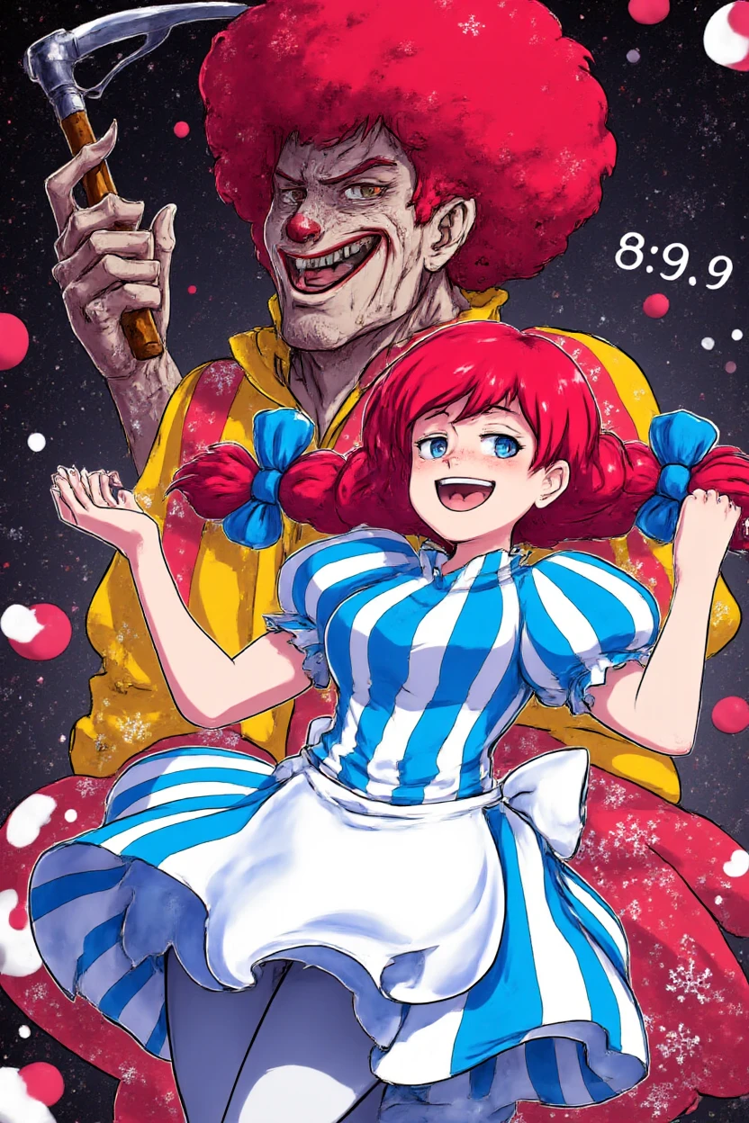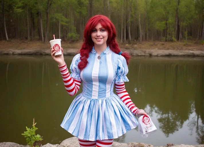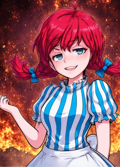 The Wendy's mascot, trained on "Smug Wendy's" meme images. It should do fine making standard images of Wendy. But as the name suggests, it leans toward smugness. I trained on a few different clothing options which you can use with variations of the following prompt.
