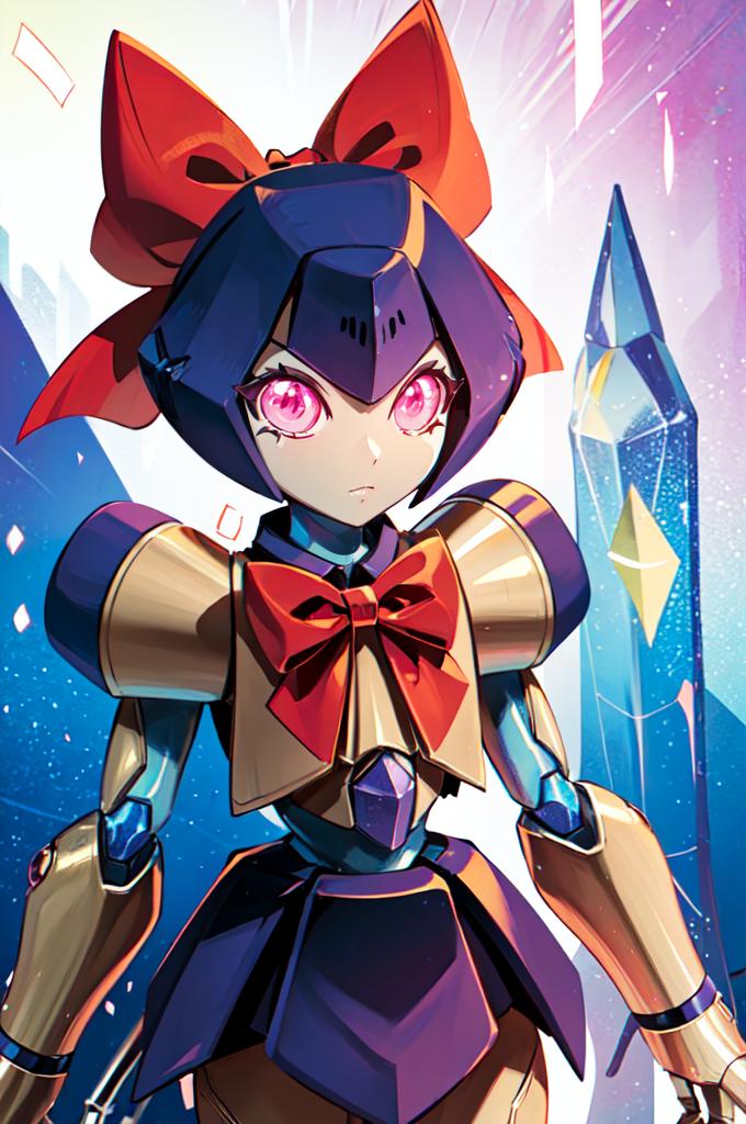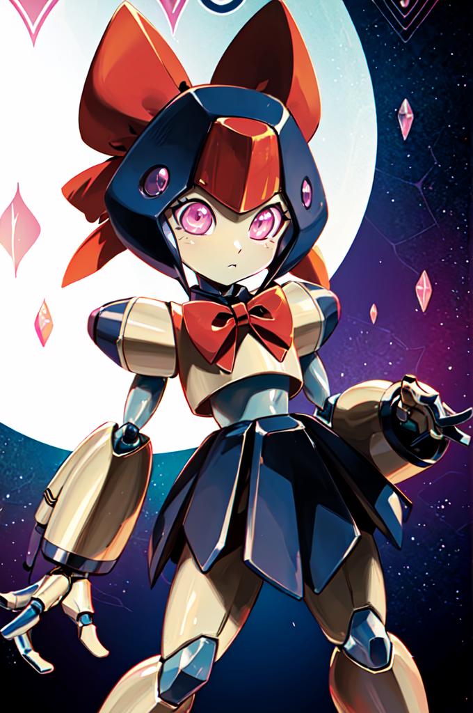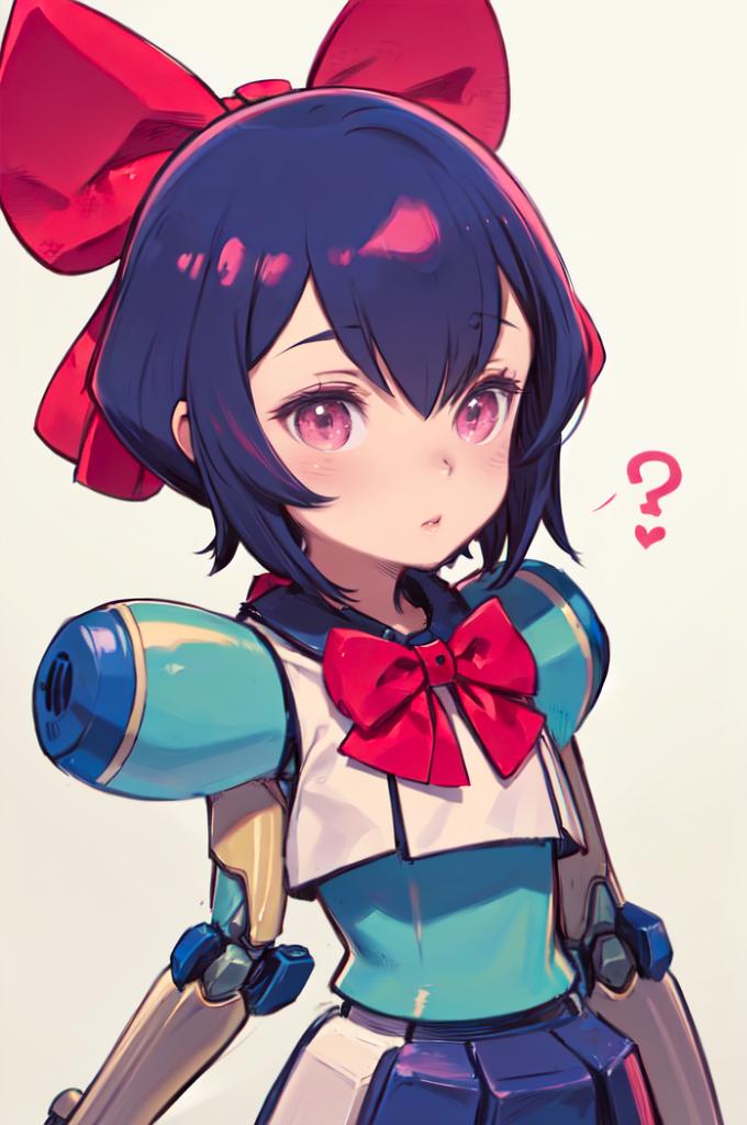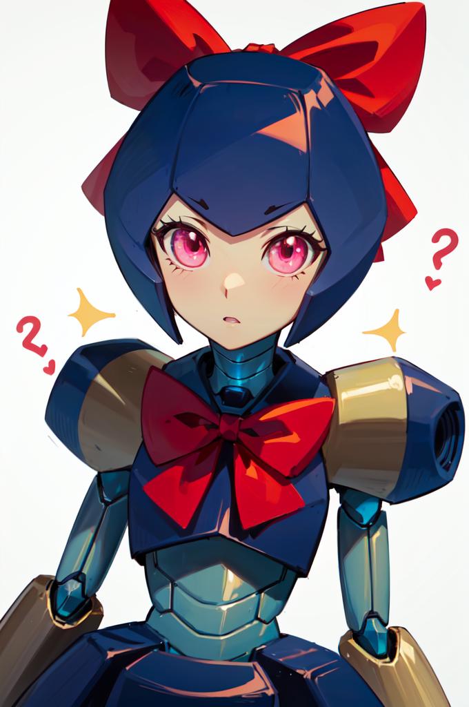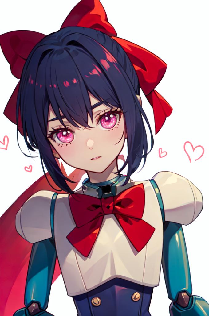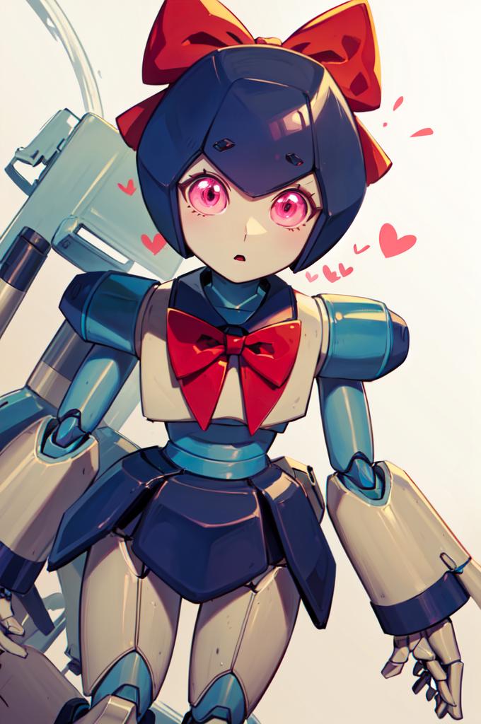 Prompt: brass_medabots, hair bow, red bowtie, (humanoid robot:1.13)