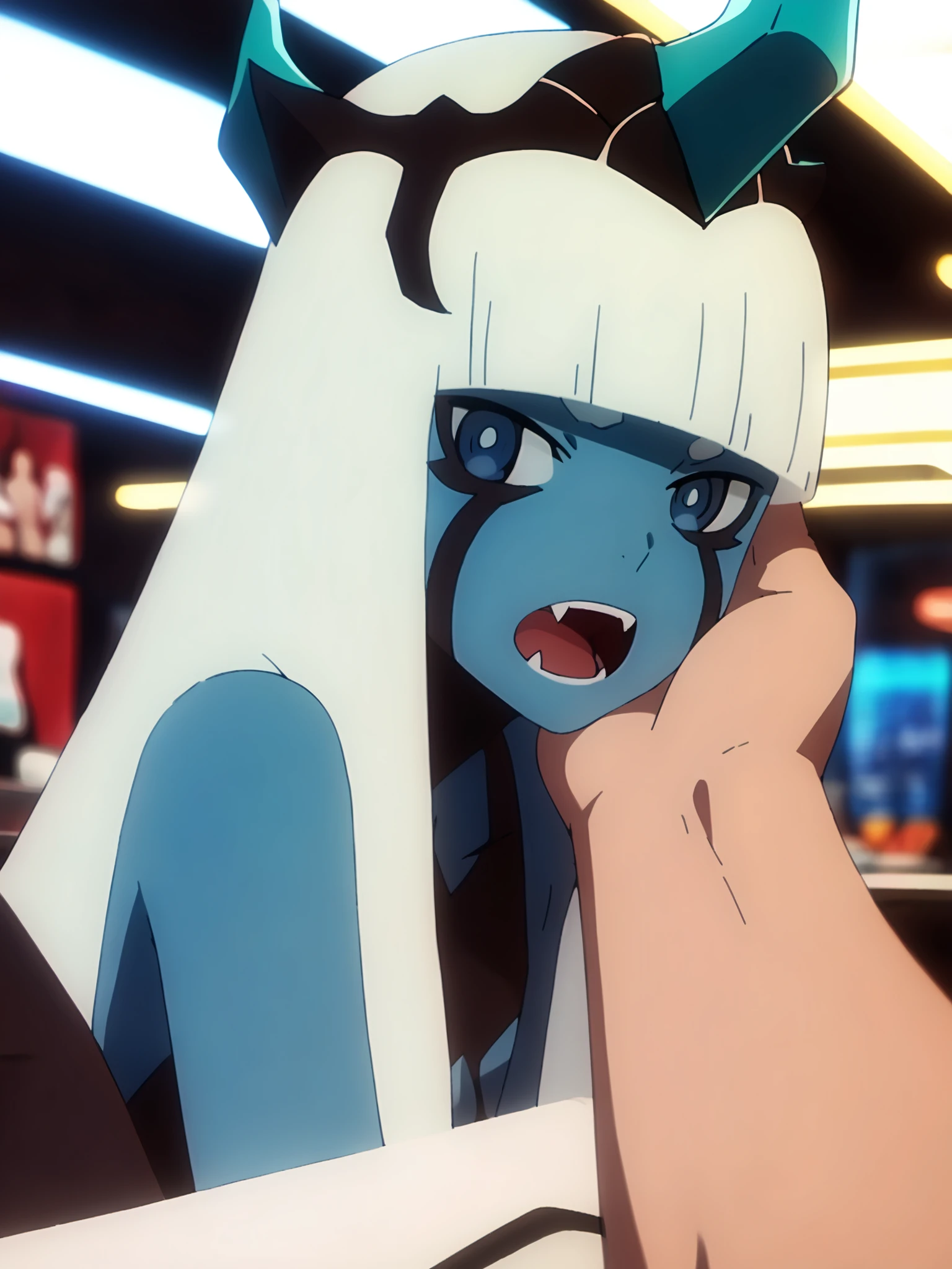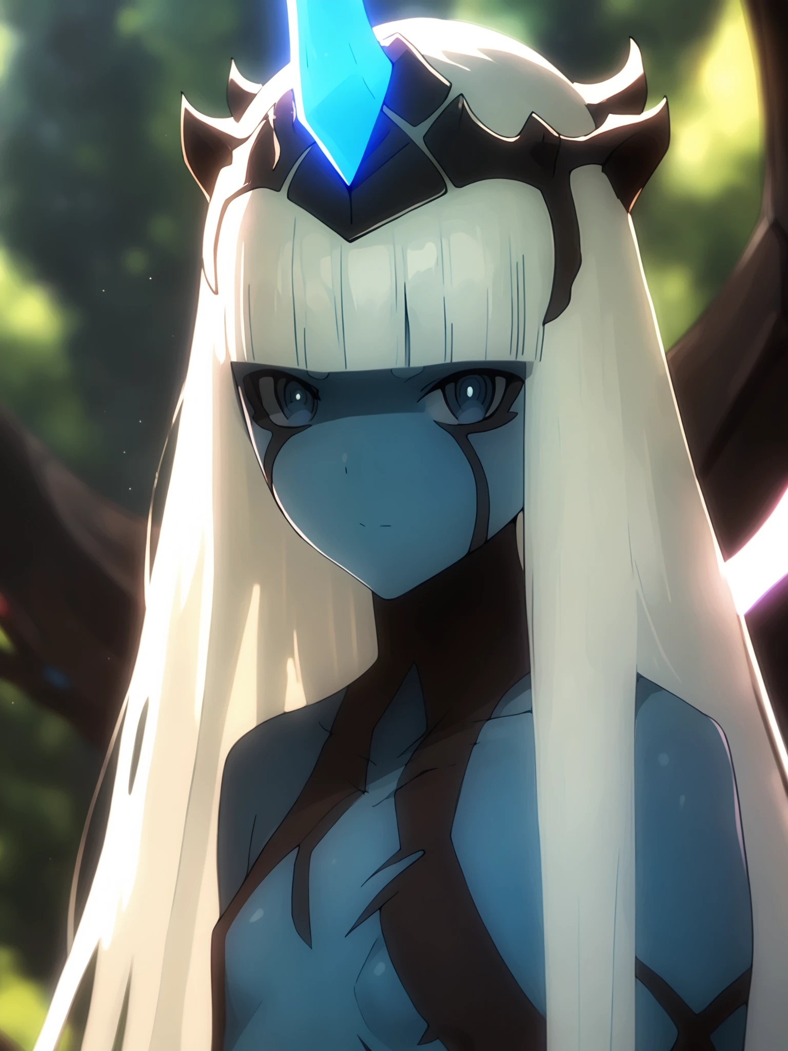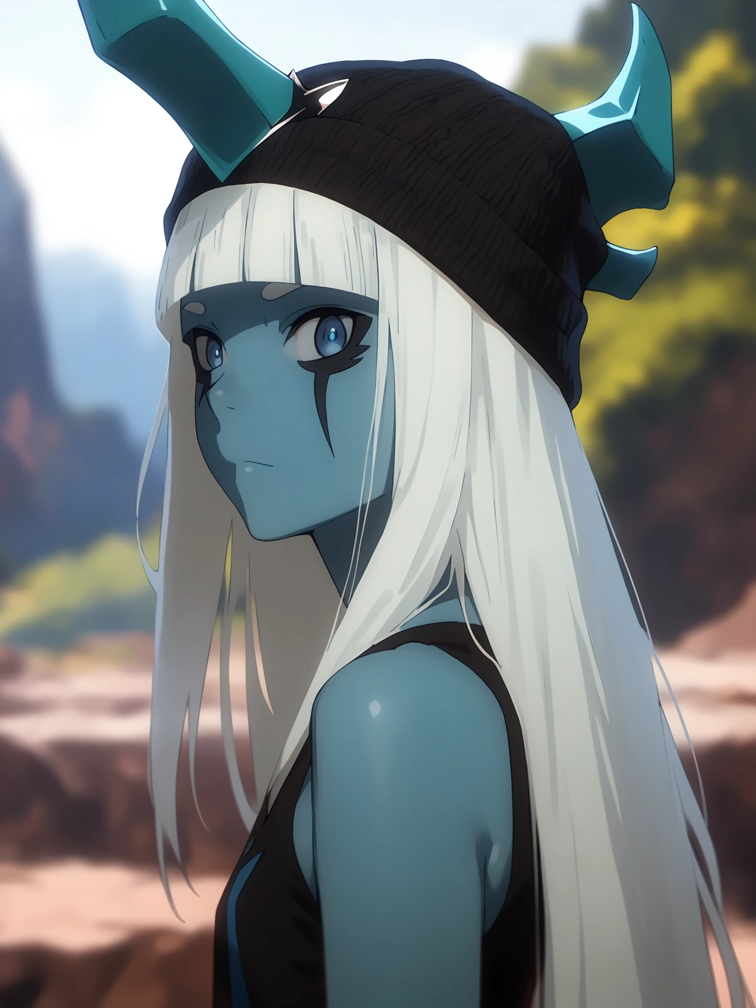 Add as needed: facial mark, body markings, blue eyes, white hair, very long hair