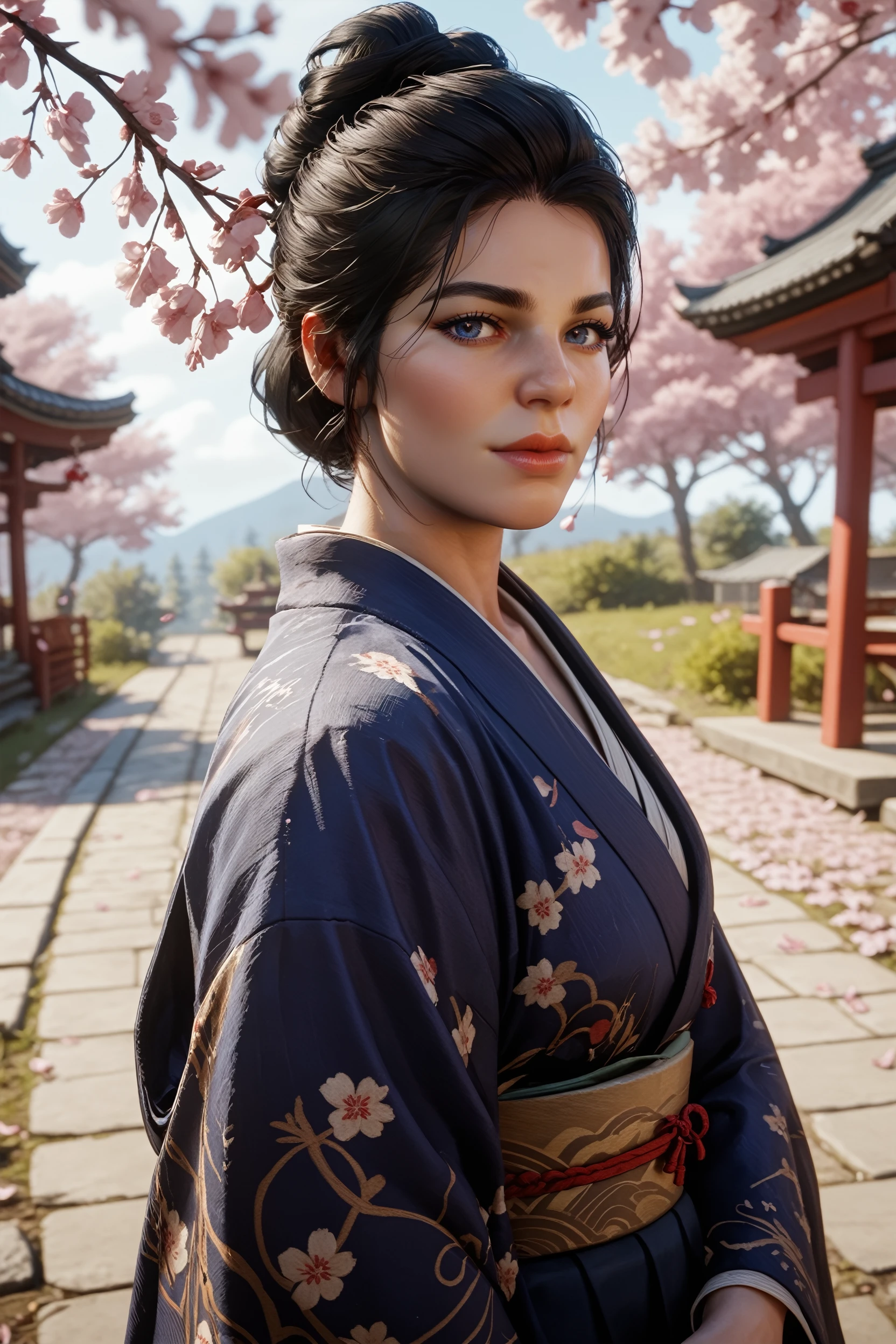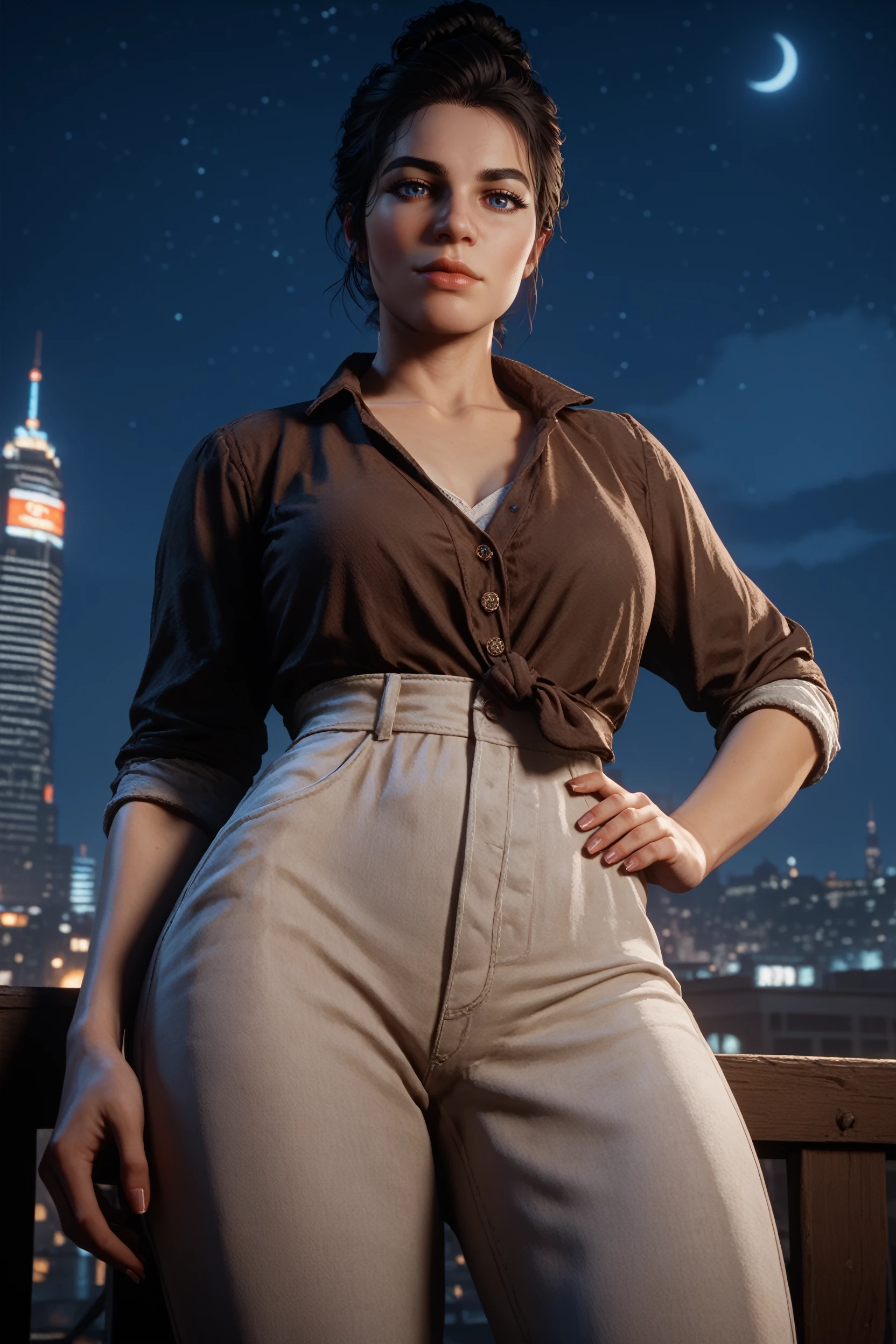 RDR2Abigail, 1girl, black hair, blue eyes, hair updo