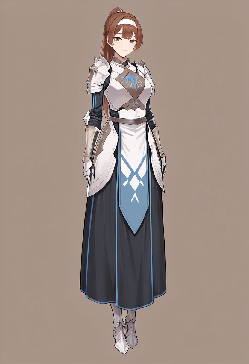 white hairband, armor, gauntlets, breastplate, shoulder armor, faulds, pauldrons,