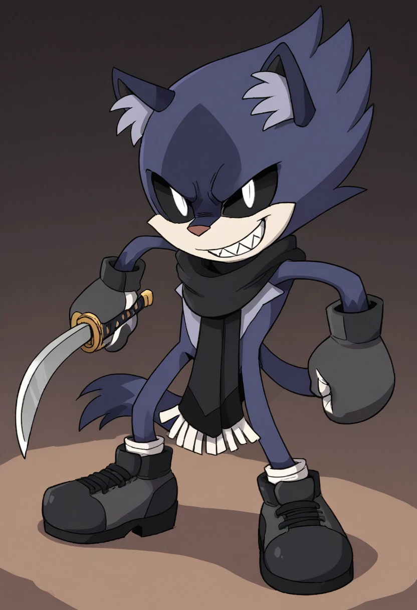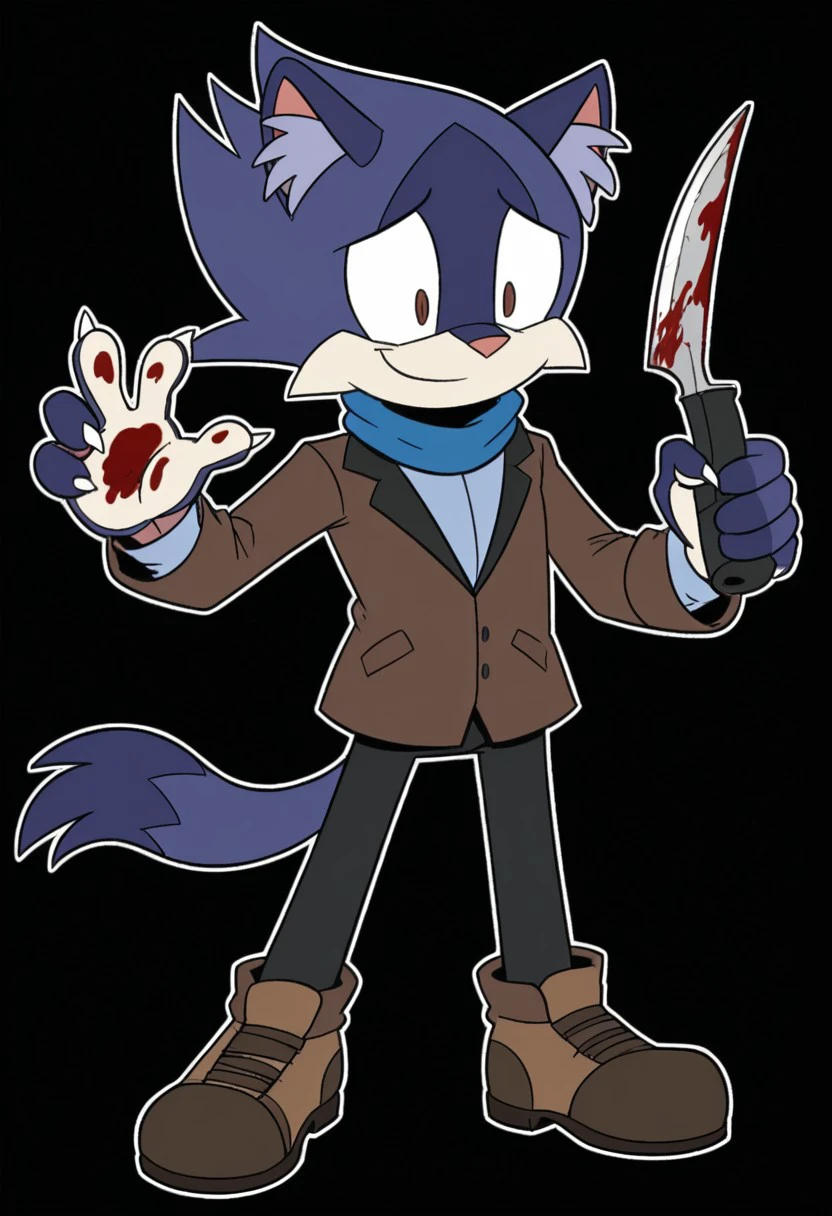 Duo the Cat from the Sonic the Hedgehog IDW comics. You better watch your back, this cat is not what he appears to be. Use "sonic (series)" to make him look more according to a Sonic character, BUT ADD "sonic the hedgehog" as a negative prompt, otherwise he'll look weird.