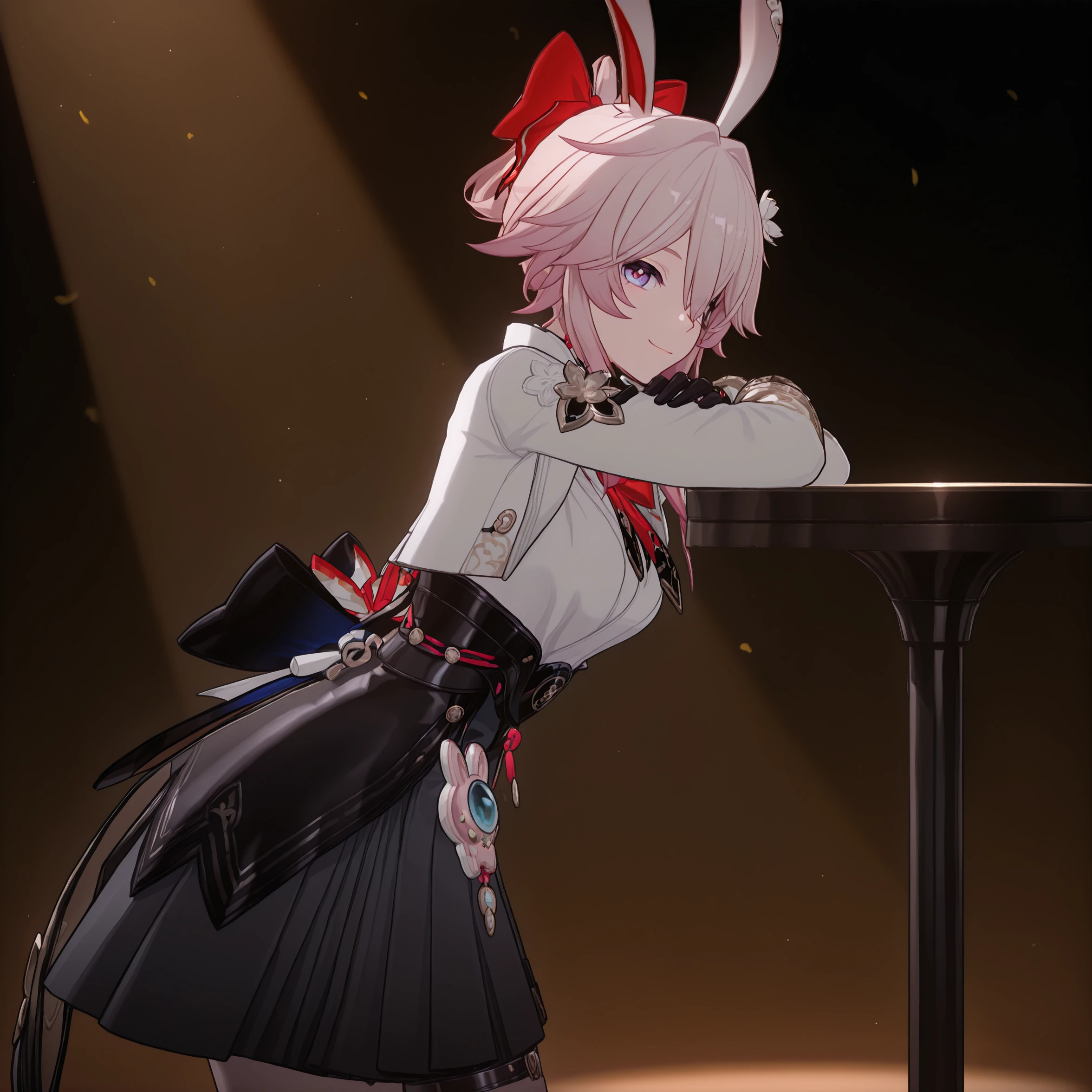 官方服设绑定在以下标签:white jacket, white shirt, skirt, bow, pantyhose, boots, gloves