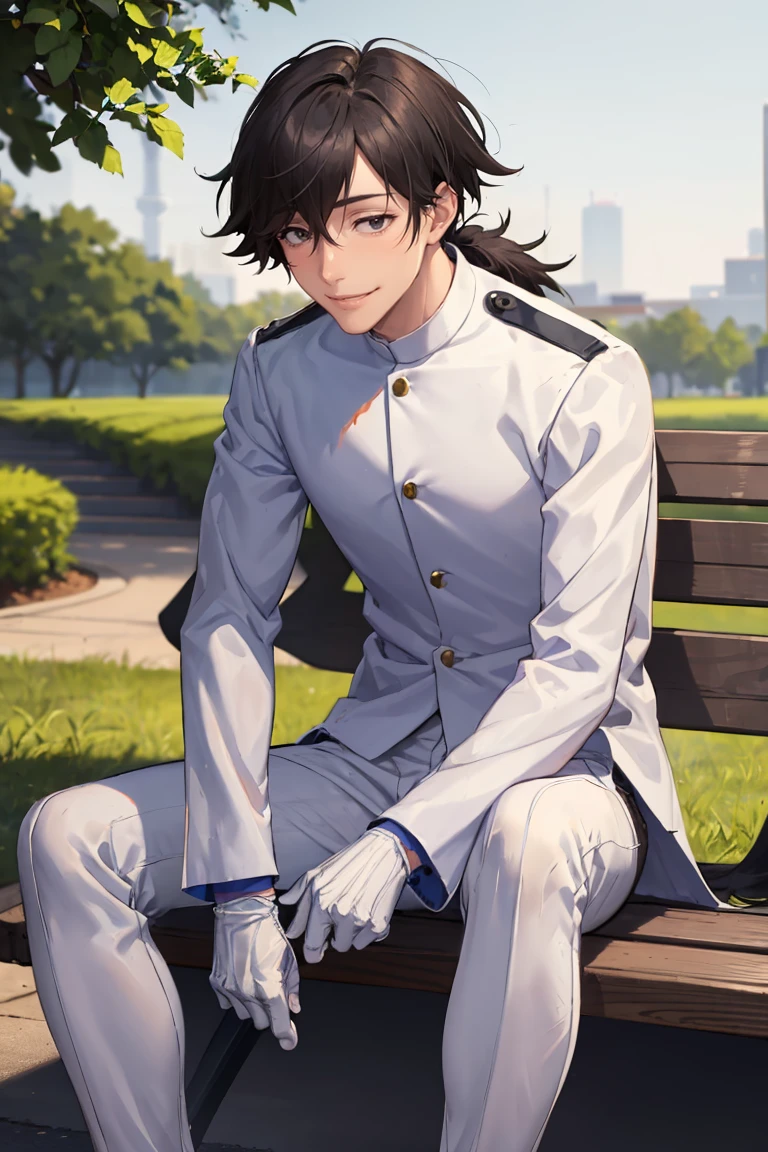 SakamotoRyouma, black hair, ponytail, white hat, white jacket, white gloves, white pants