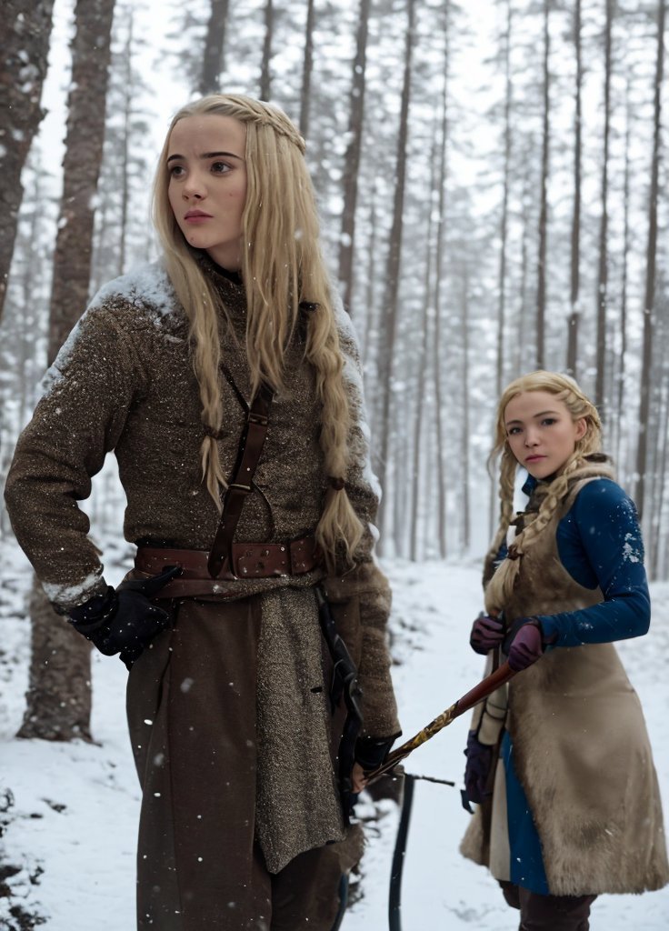witcher-ciri, solo, 1girl, blonde hair, glowing green eyes, braid, hair over shoulder, long hair, single braid, castle, brown leather armor
