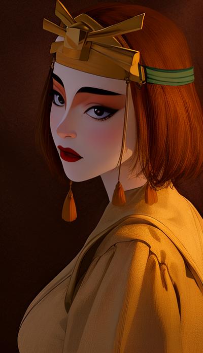 ✦ The main trigger words is 1girl, brown hair, blue eyes, makeup, lipstick, headband, green armor, long sleeves,