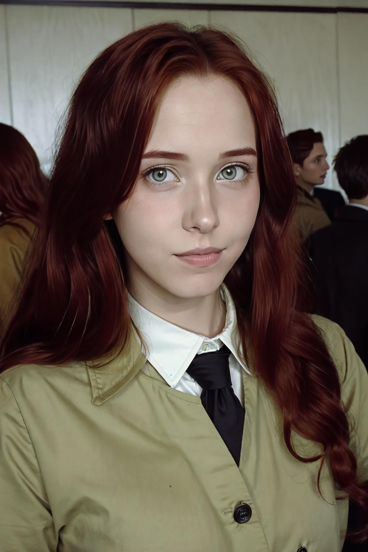 Сhuvydla, long hair, brown hair, ((pale skin:1.3), makeup,