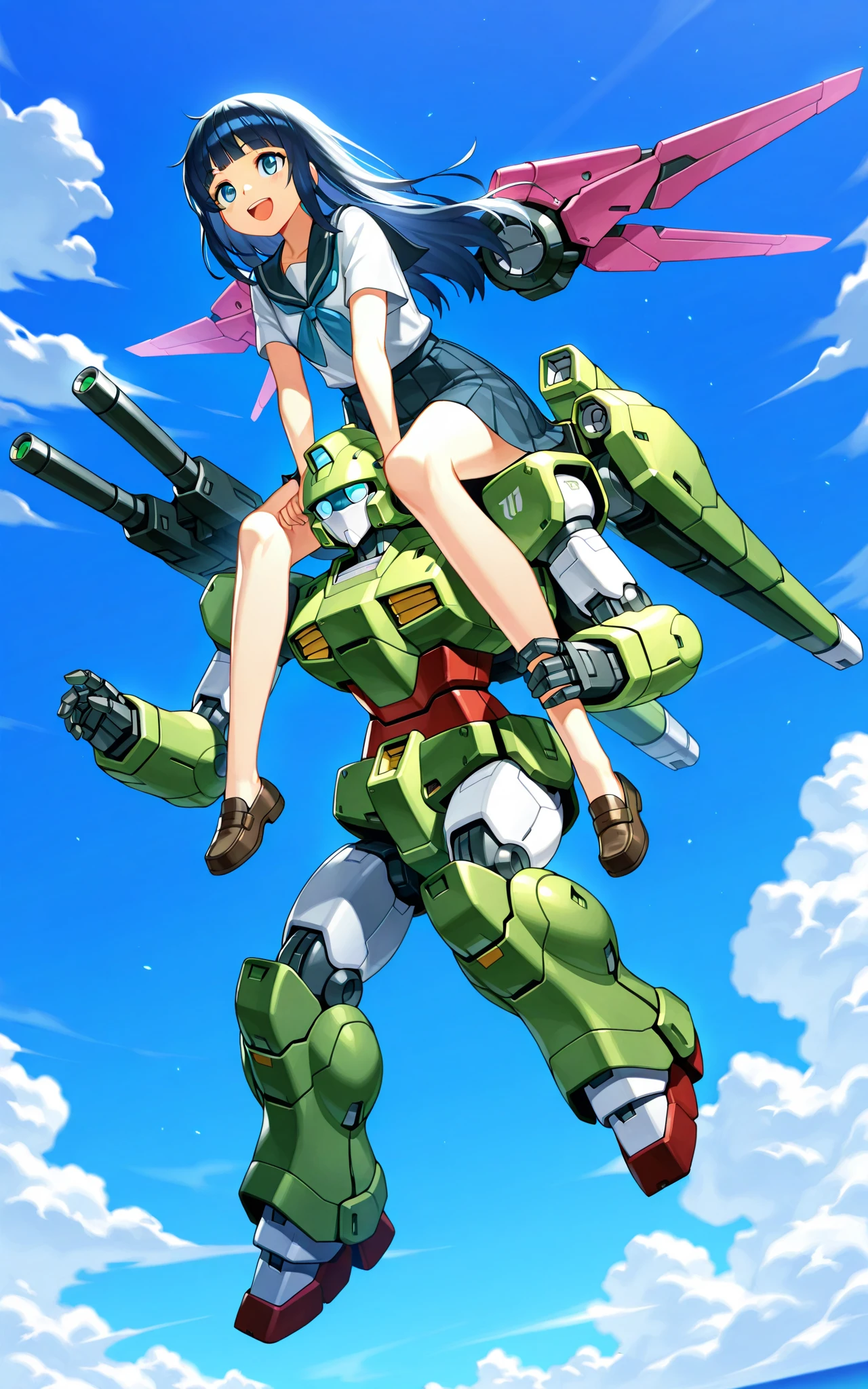 This is one of two recent LoRAs focused on characters riding on robots' shoulders.