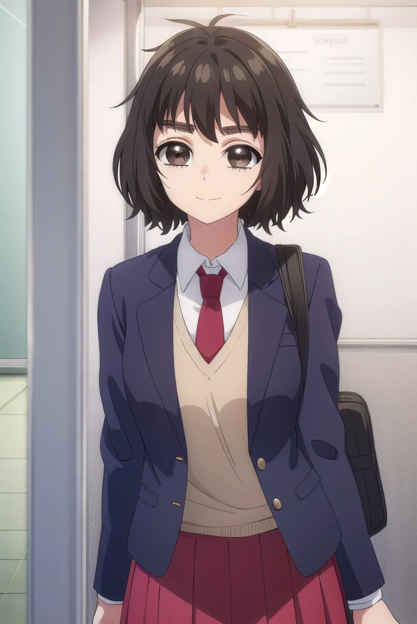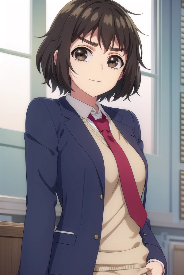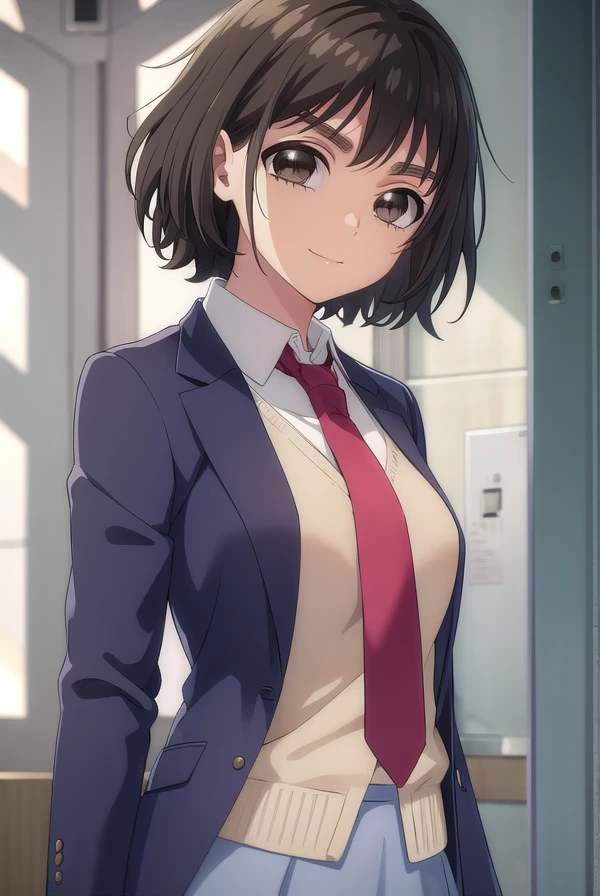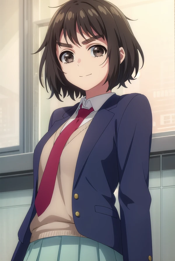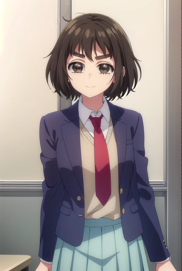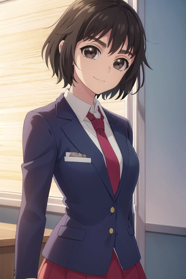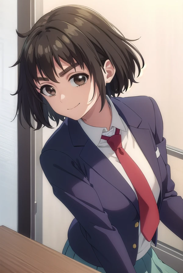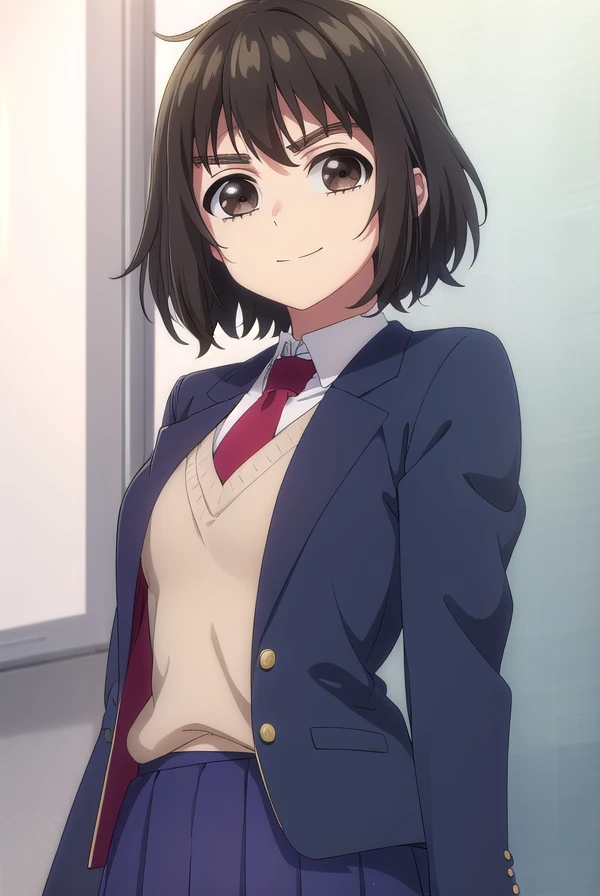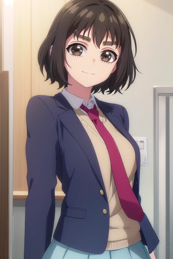 hiyori suzumi, short hair, black hair, (brown eyes:1.5), thick eyebrows,