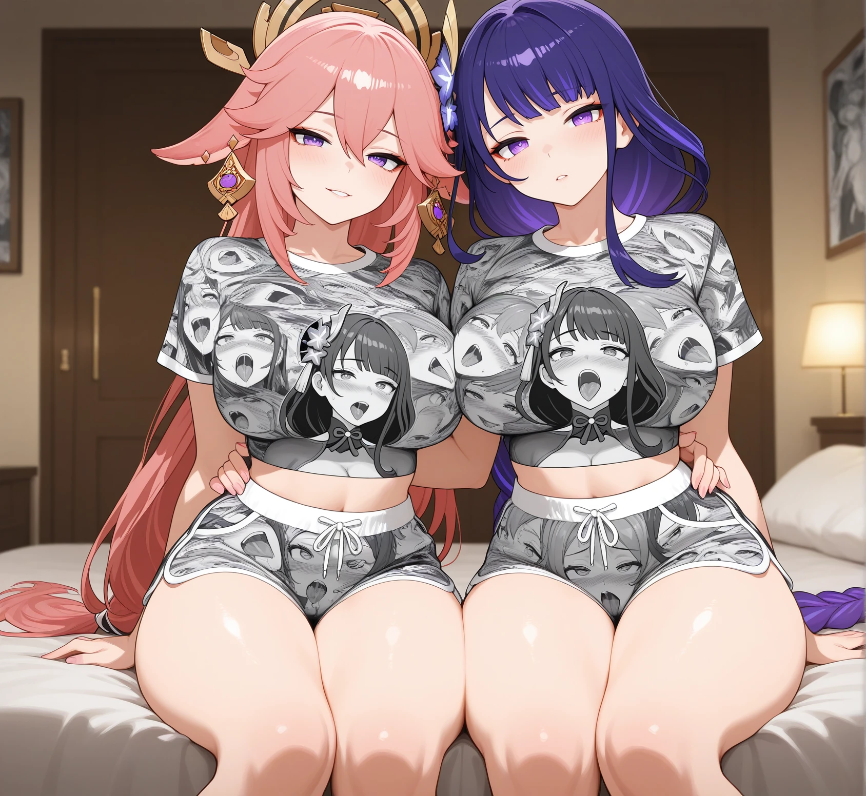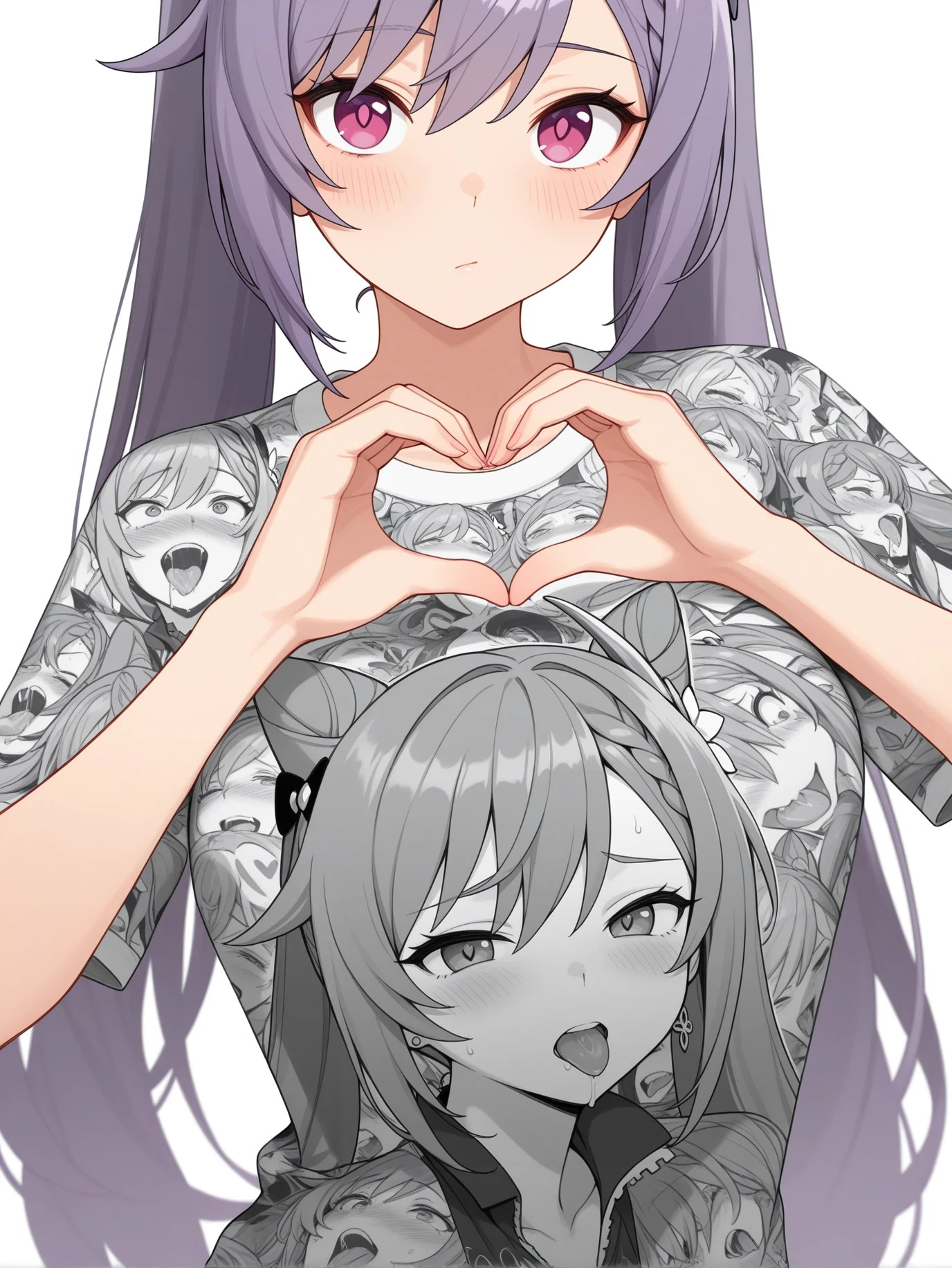 Additional tags - "print 'name of clothing or object' ". I also noticed that you can use :(ahegao_print_on_'name of clothing or object':0.5) but with a value less than 0.5 so as not to change the standart facial expression.