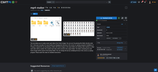 This tool allows you to easily create mp4 videos from frame images. You can use it by placing this folder directly under the C drive (you can place it in any location by changing the directory in the conver_to_mp4.py program). Installation of FFmpeg is required for use. By placing a folder with frame images in the input folder and clicking make-mp4.bat, an 8fps mp4 video will be created. The created mp4 video will be stored in the output folder. The folder containing the used frame images will be saved in the backup folder. You can change the fps by modifying the fps in the conver_to_mp4.py program. Please watch the video for detailed instructions.