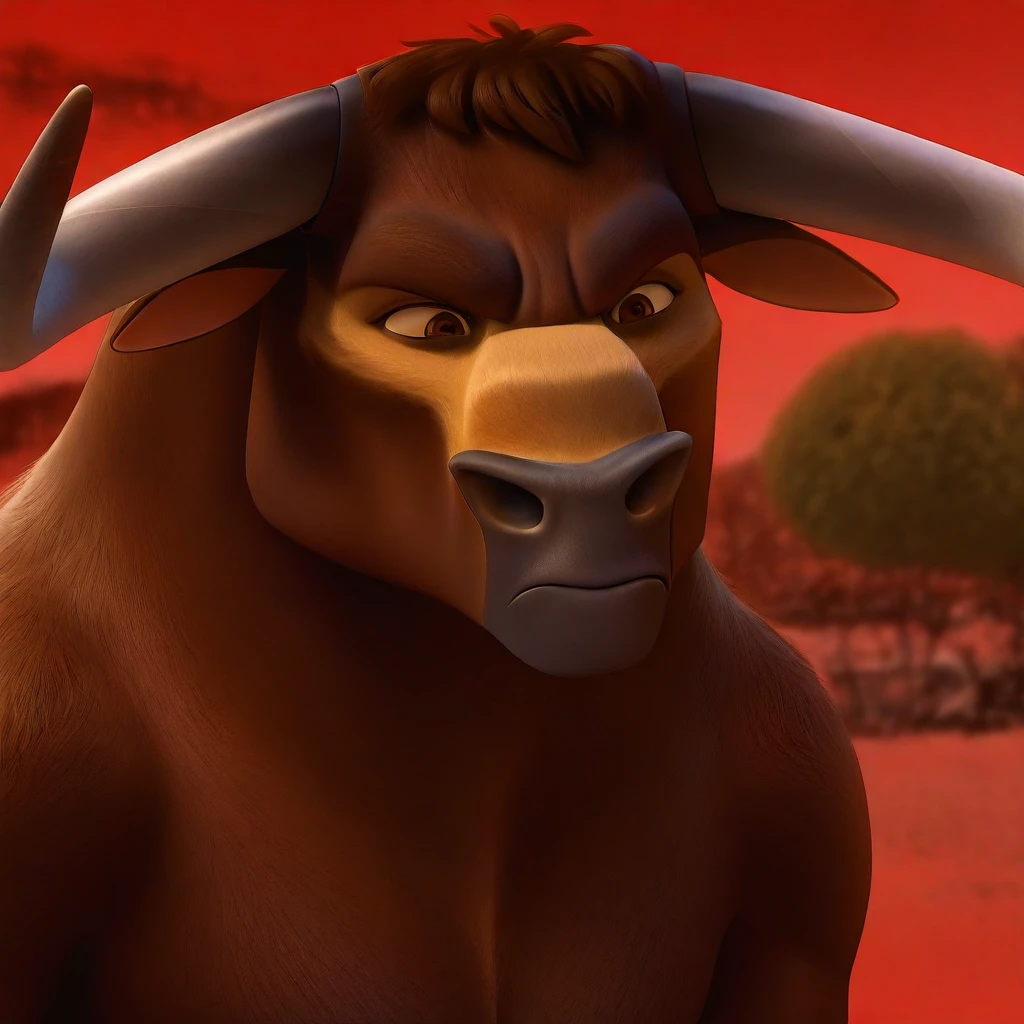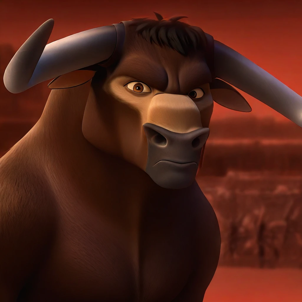 Valiente, Bull, Dark Brown Fur, brown eyes, Tan streak, gray horns