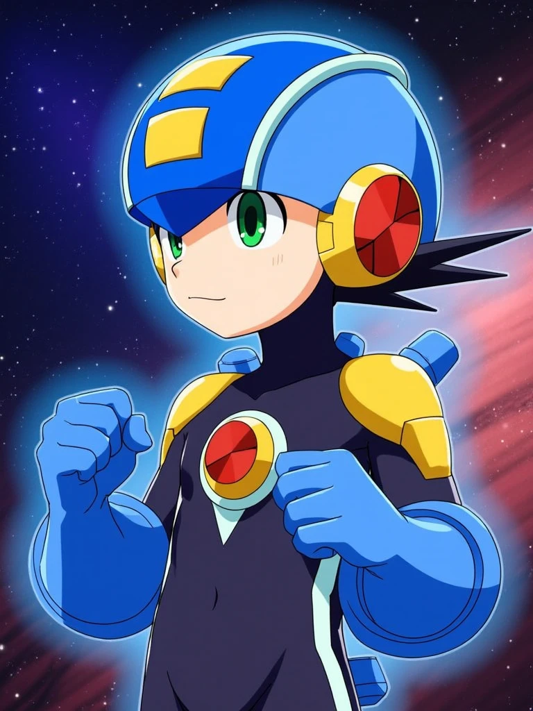 "megaman nt, solo, 1boy, male focus, boots, helmet, green eyes, bodysuit".