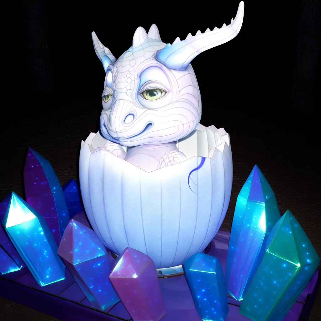 Trained on 17 images of baby dragons hatching from their eggs, at a local nighttime light show installation display. You can prompt for a baby dragon in an eggshell with crystals and fireworks.