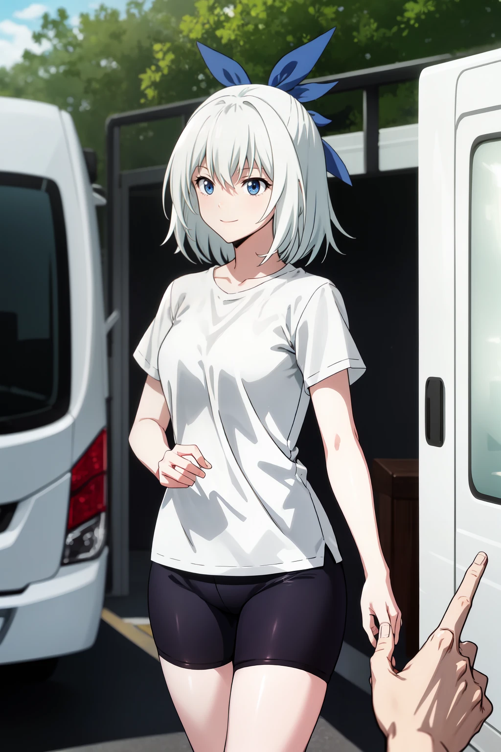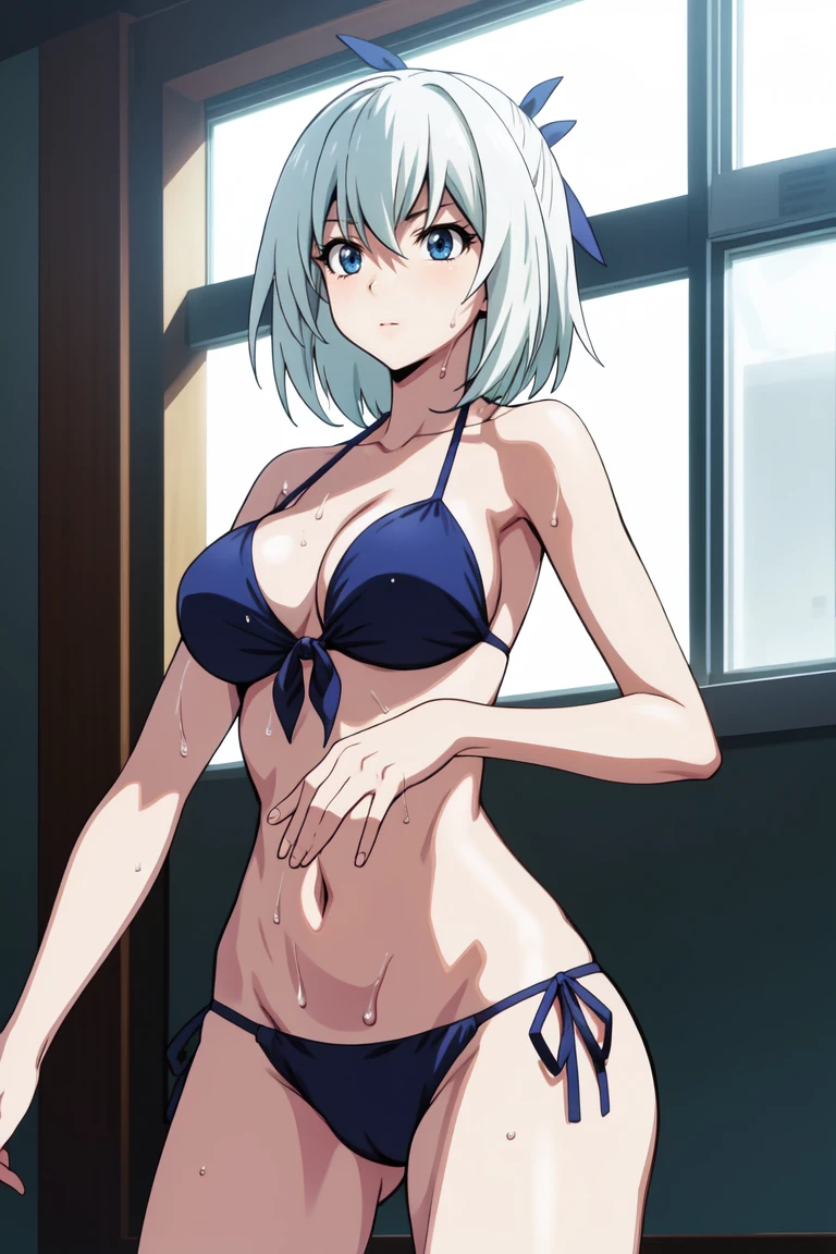Sayaka <lora:Sayaka:0.7>, white hair, short hair, blue eyes, blue ribbon