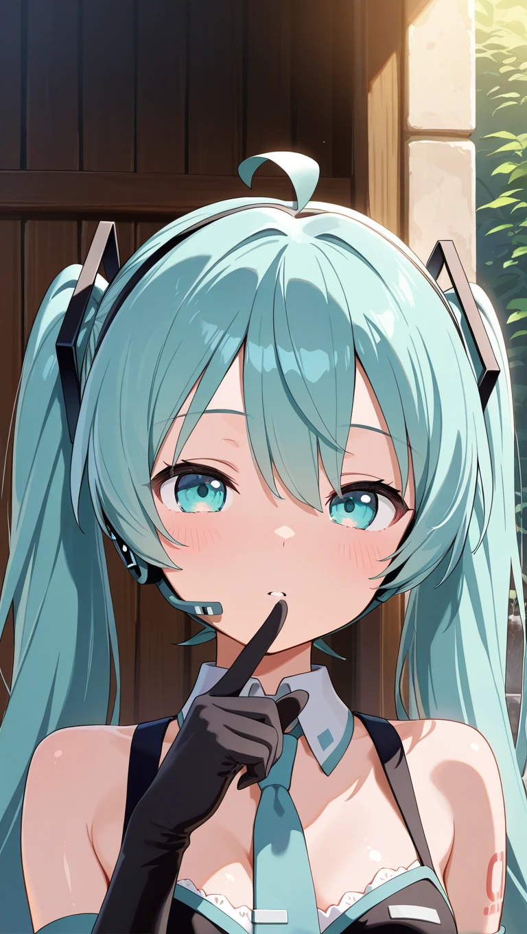 ahoge,headset,headphones,very long hair,aqua hair,twintails,hair between eyes,aqua eyes