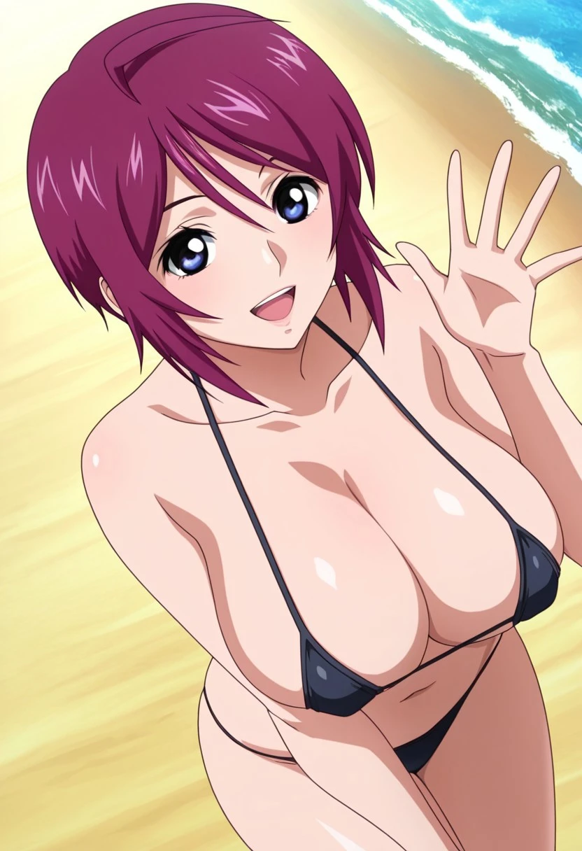 Lunamaria Hawke,purple hair, short_hair, ahoge, blue_eyes, huge_breasts,