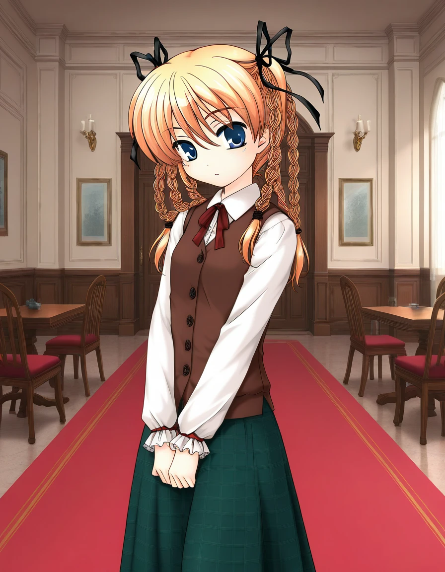 Itsuki&Imi, blonde hair, blue eyes, ribbon, long hair, hair ribbon, braid, twin braids, short stack,