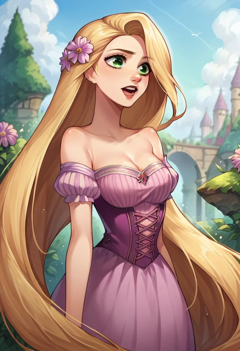 You can add looking at viewer,angel wings,halo,sky,cloud,midair,full body, to make it look like that.