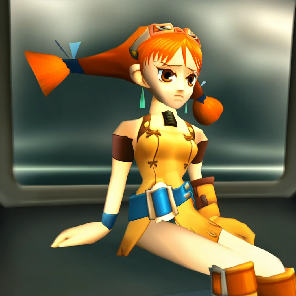 aika, 1girl, solo, twintails, jewelry, goggles, earrings, orange hair, belt, goggles on head, short dress, dress, boots,