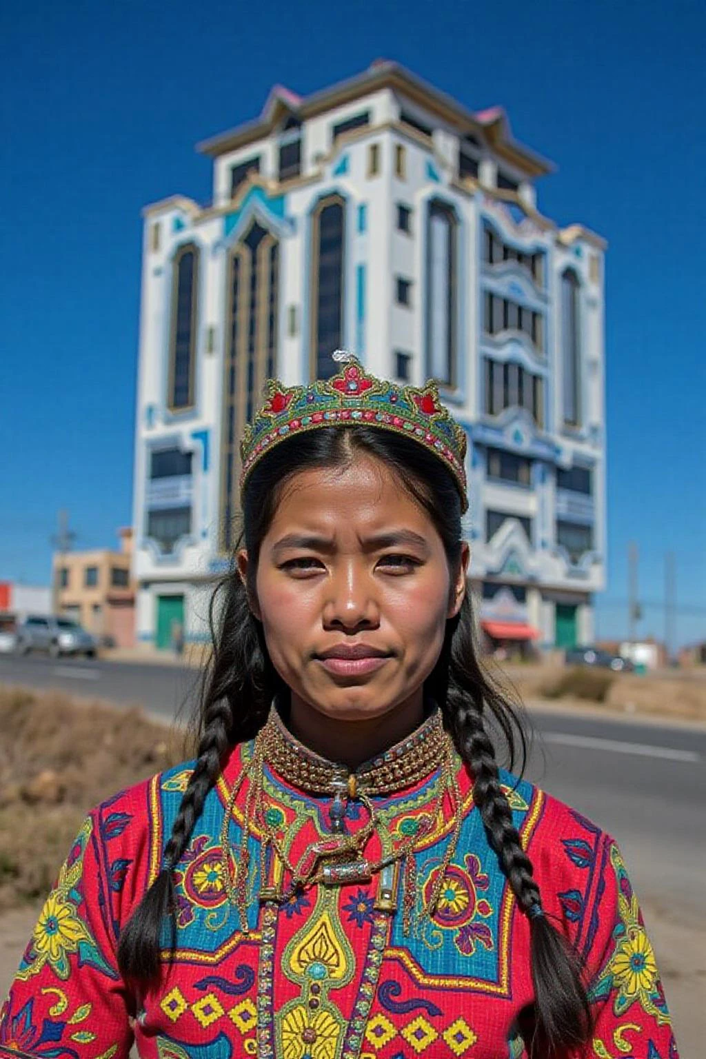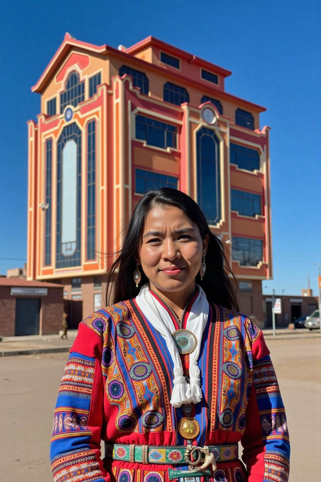 Architecture historian Elisabetta Andreoli described the style, represented in over 100 structures across the El Alto skyline, as neo-Andean. Paola Flores noted that "most [of the neo-Andean structures] have been built since President Evo Morales, an Aymara who is the country's first indigenous leader, took office in 2006. Their emergence coincides with a modest economic boom coupled with a rise in Aymara pride."[4] They also coincided with the rapid development and modernization of El Alto, a traditionally low-income area with many unpaved roads and improvised structures.