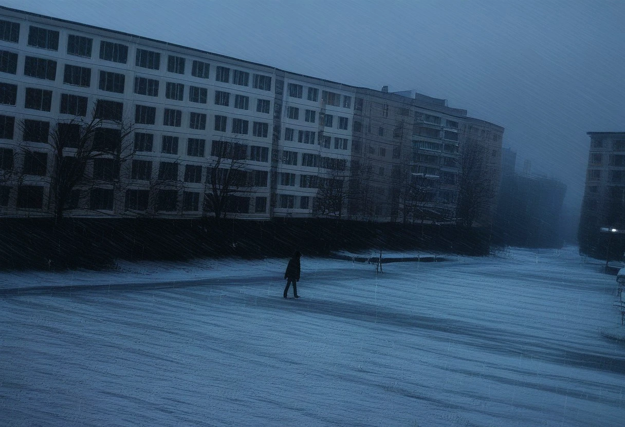 Gritty, melancholic, and realistic depictions of post-Soviet urban decay. Cold, desolate environments and doomer aesthetics.