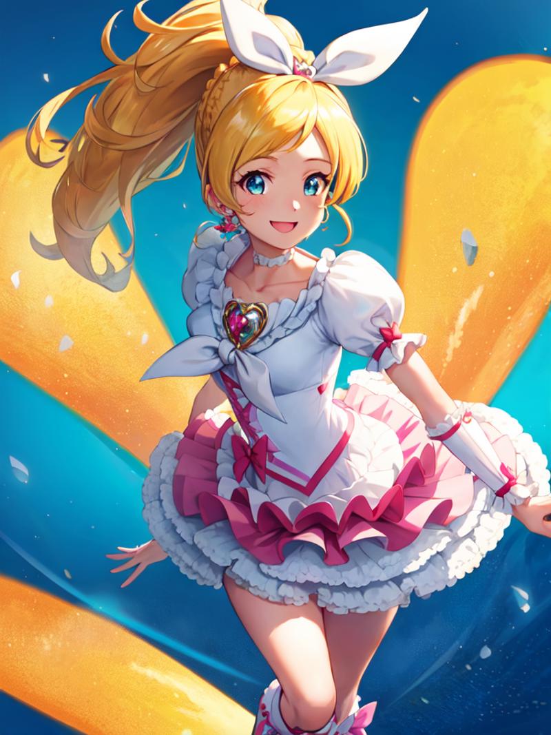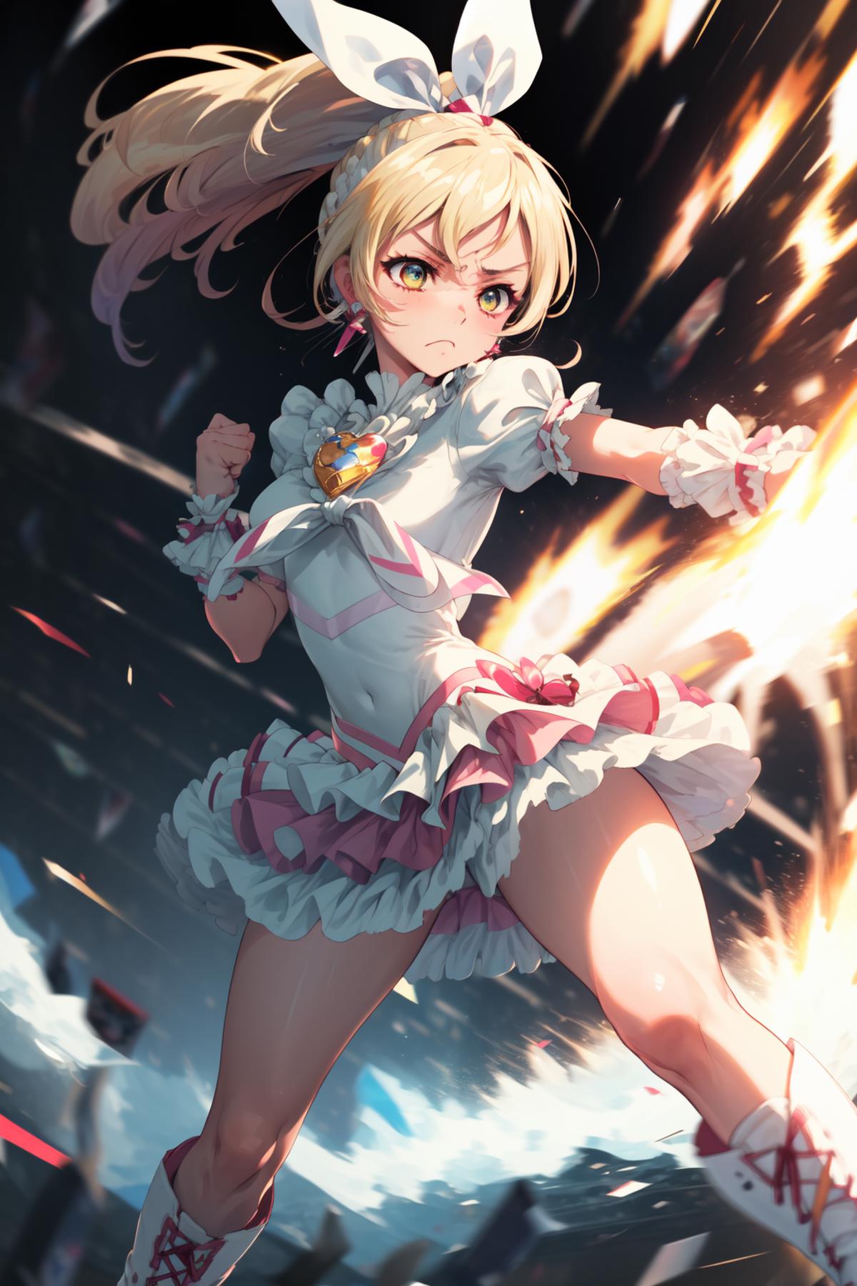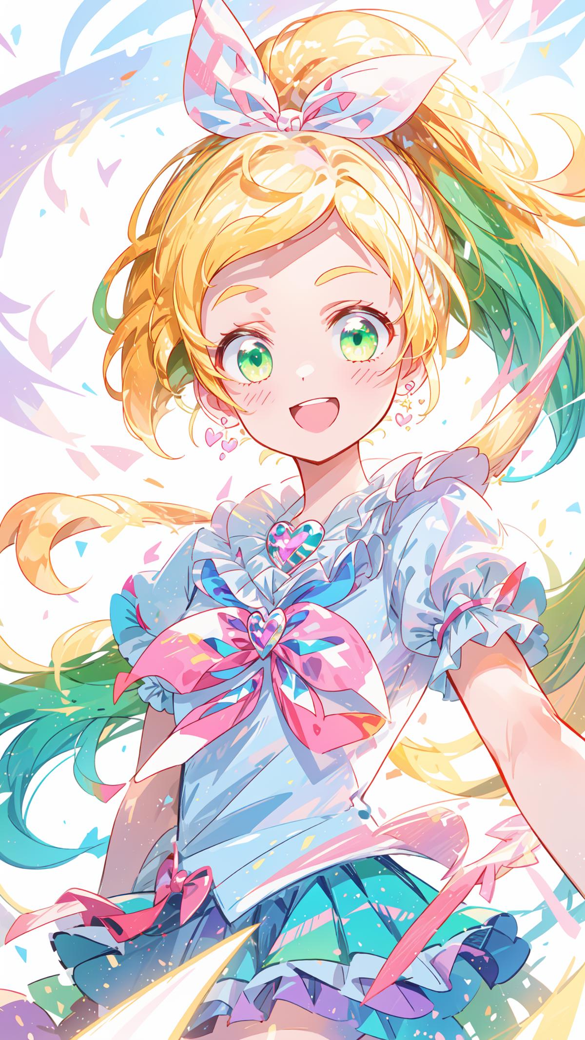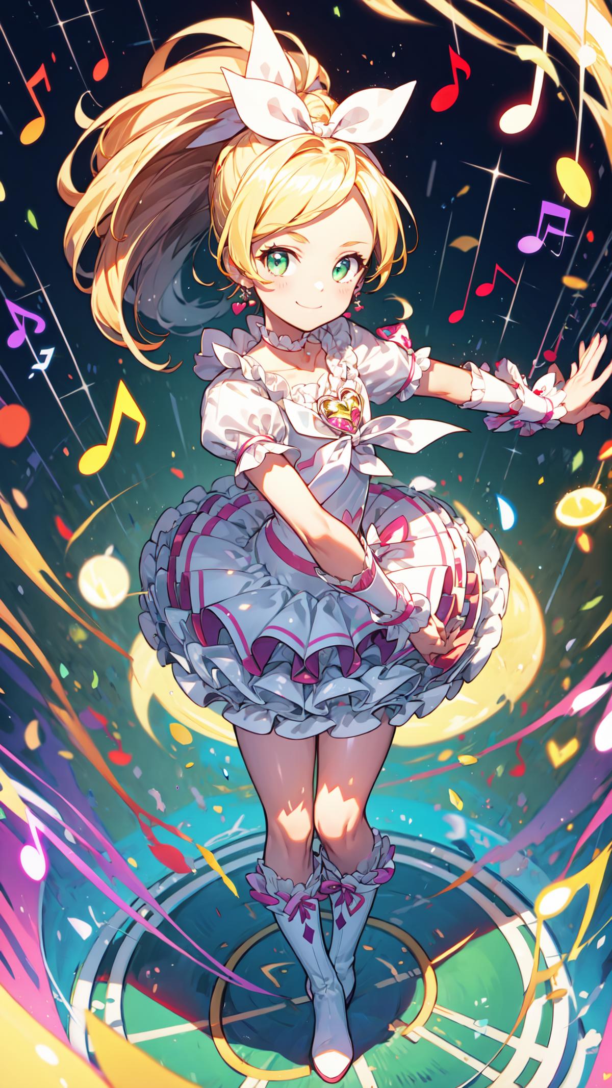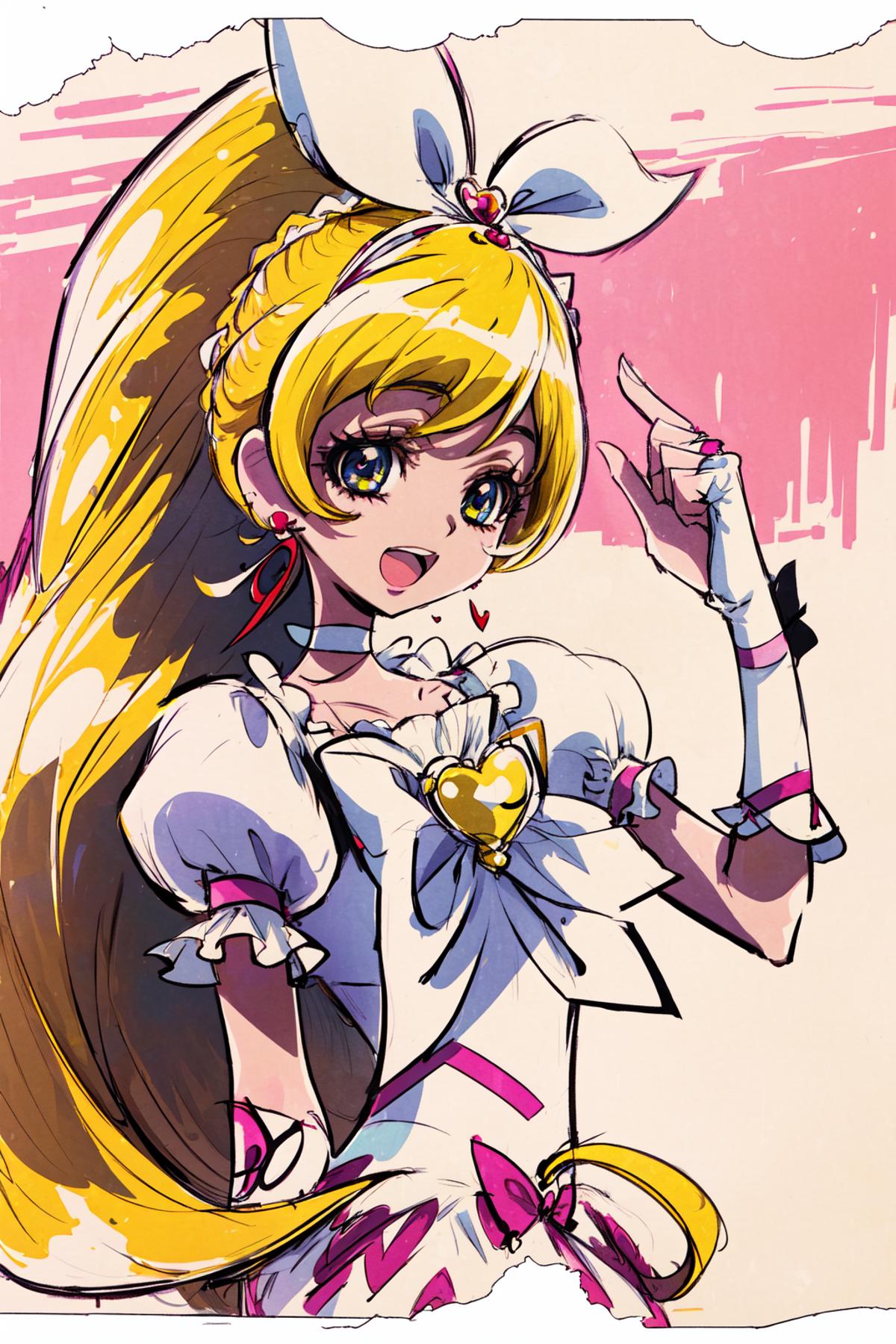 Recommend Tags: wide ponytail, puffy short sleeves, brooch, heart earrings, ribbon, arm warmers, white boots