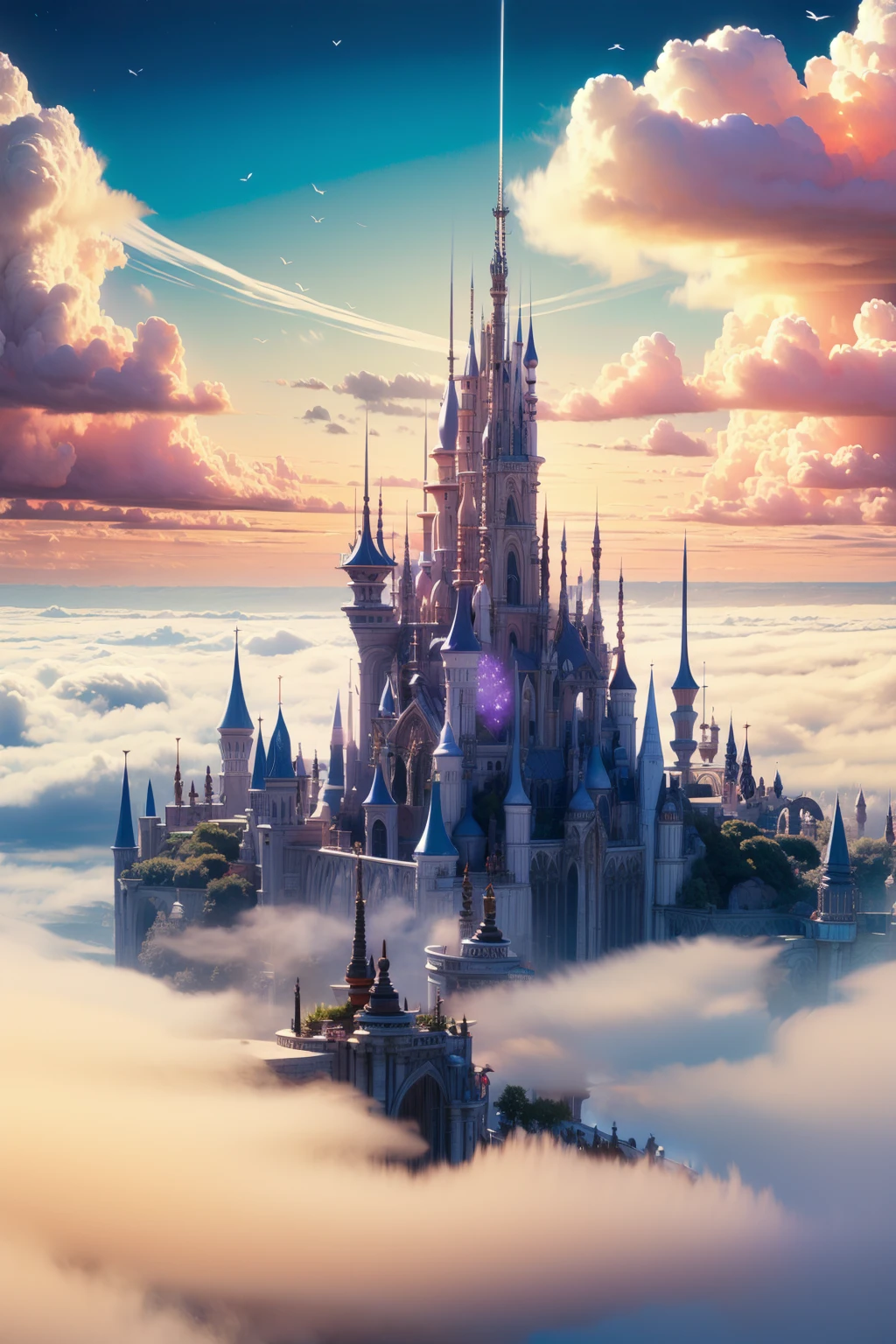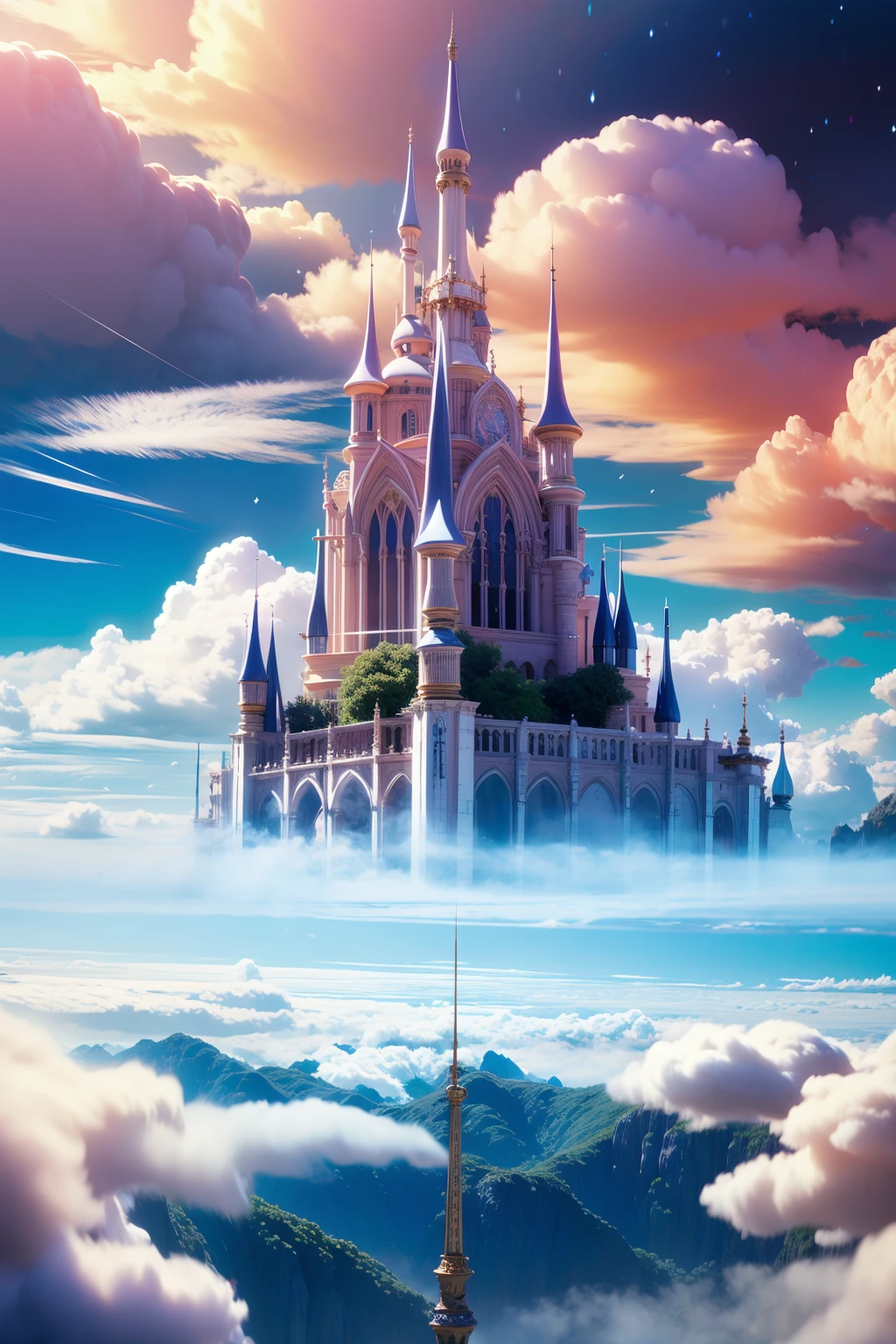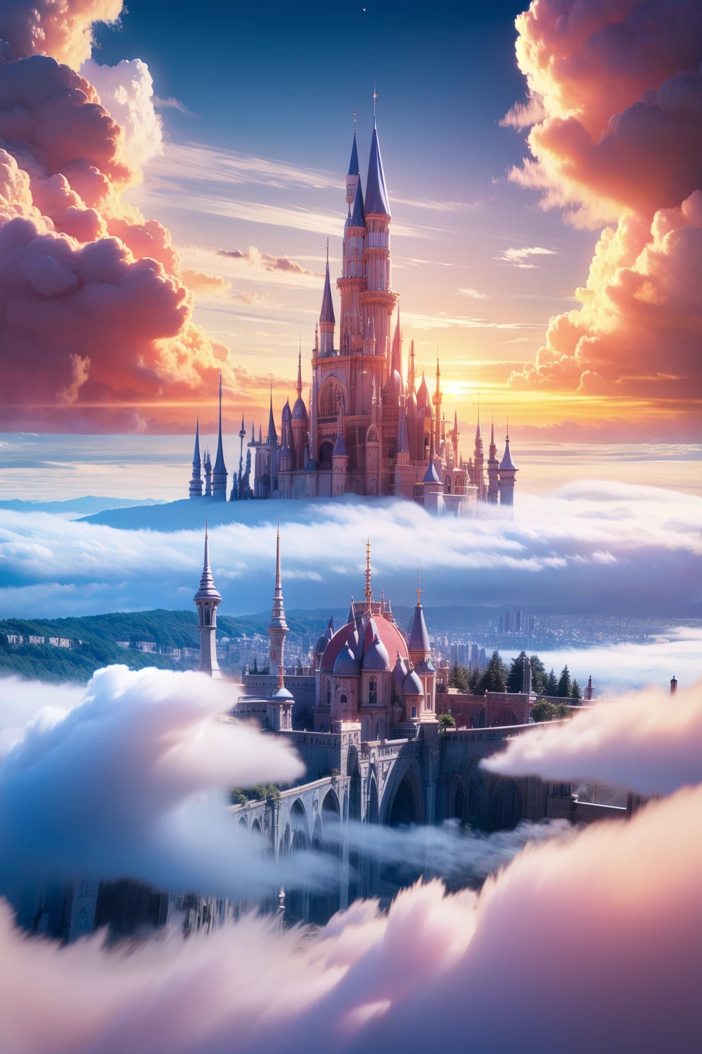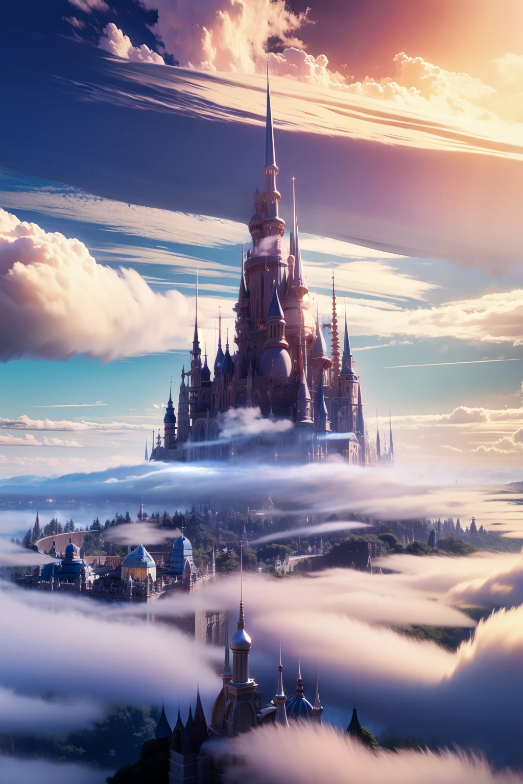 1:mhxy, cloud, scenery, no humans, sky, fantasy, above clouds, outdoors, cloudy sky, castle, city.