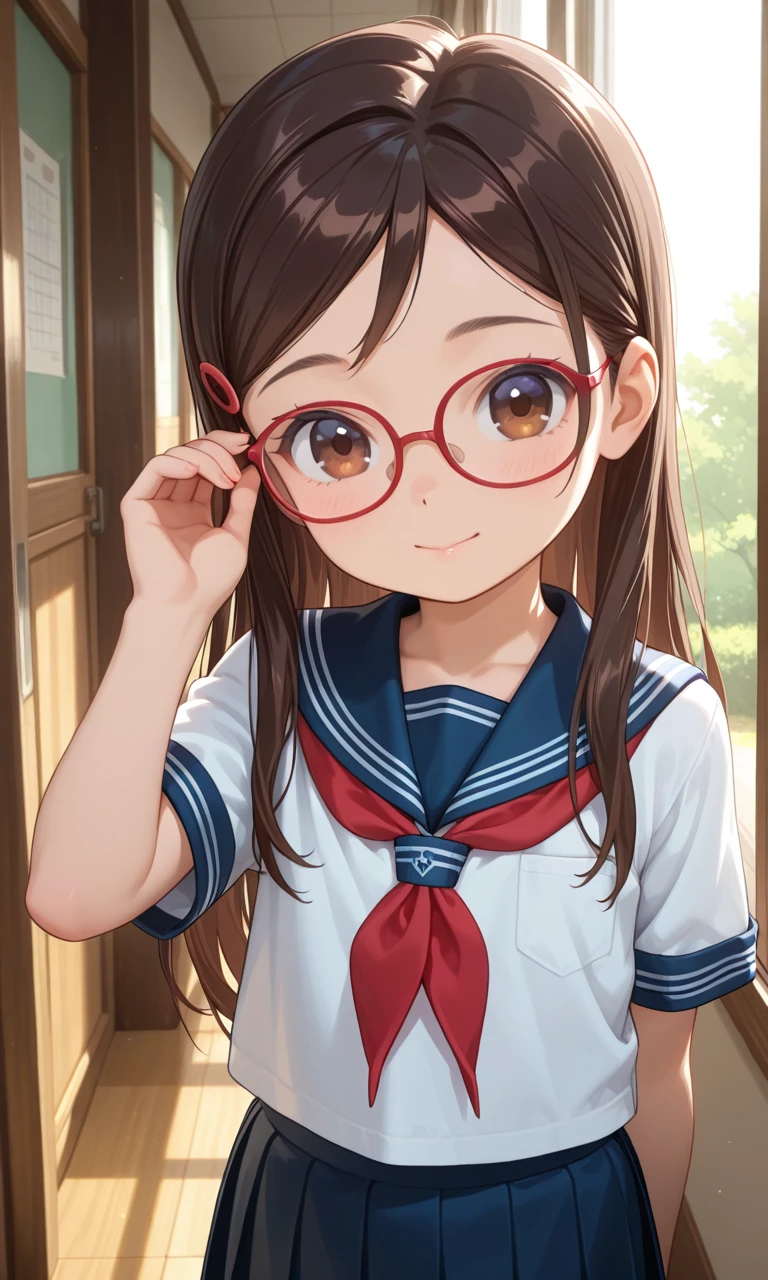 Propmt: 1girl, Amaya, Brown hair, Long Hair, Brown Eyes, Glasses,Option: 3D, Chibi, Child,