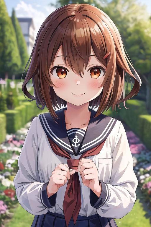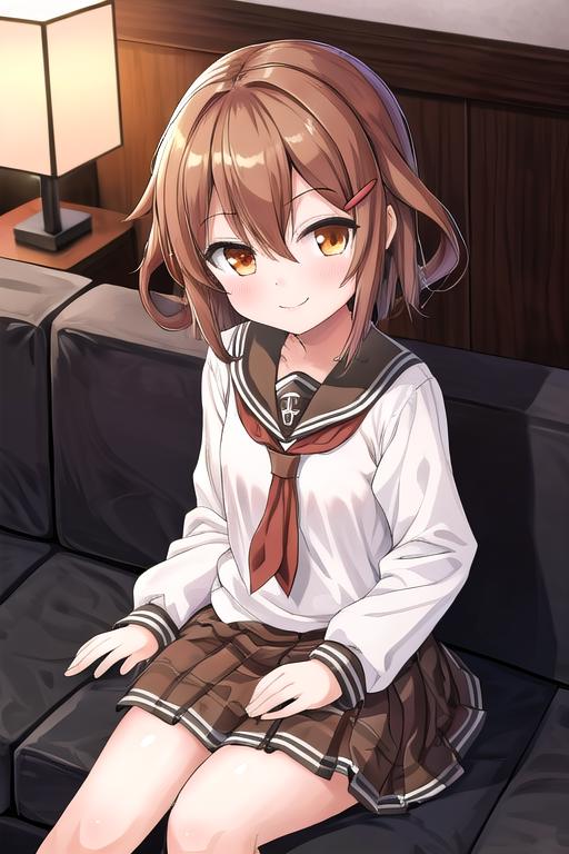 The trigger word is ikazuchi_kantaicollection, and the recommended tags are best quality, masterpiece, highres, solo, {ikazuchi_kantaicollection:1.15}, brown_hair, short_hair, hairclip, hair_ornament, brown_eyes, serafuku, fang, open_mouth, smile, blush.