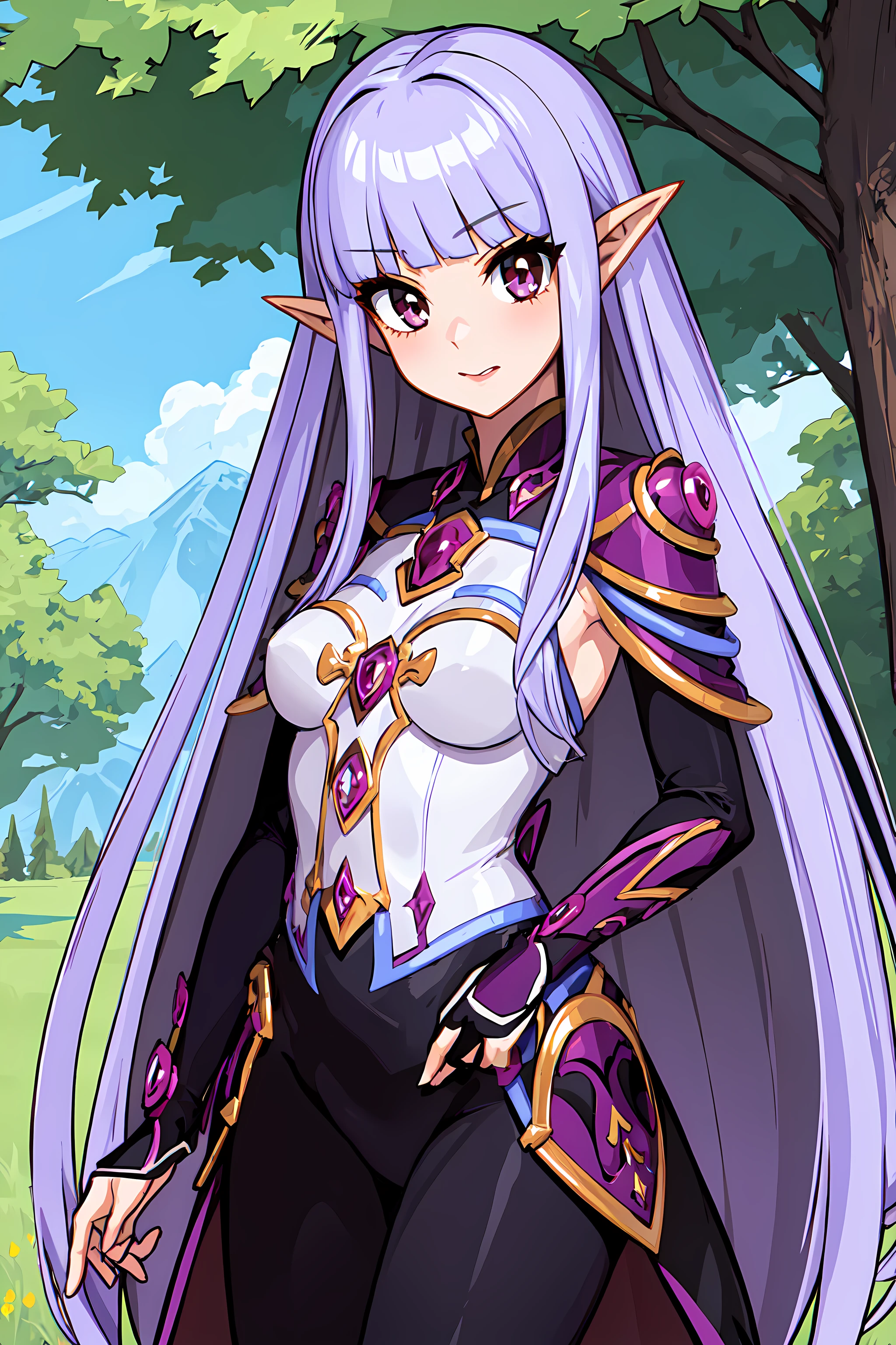 Trigger words: luna, 1girl, solo, pointy ears, long hair, purple hair, brown eyes