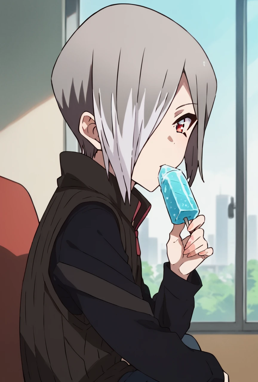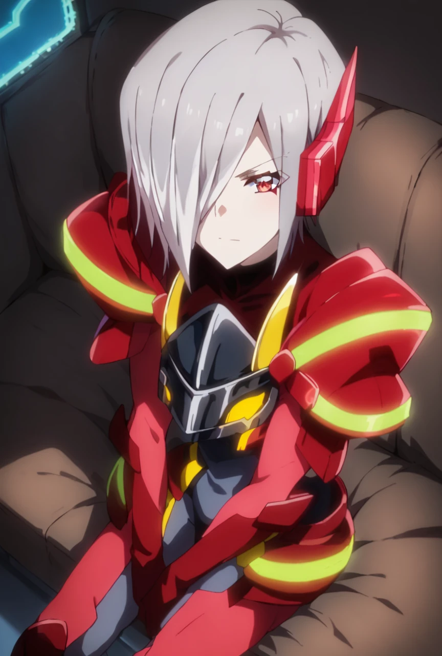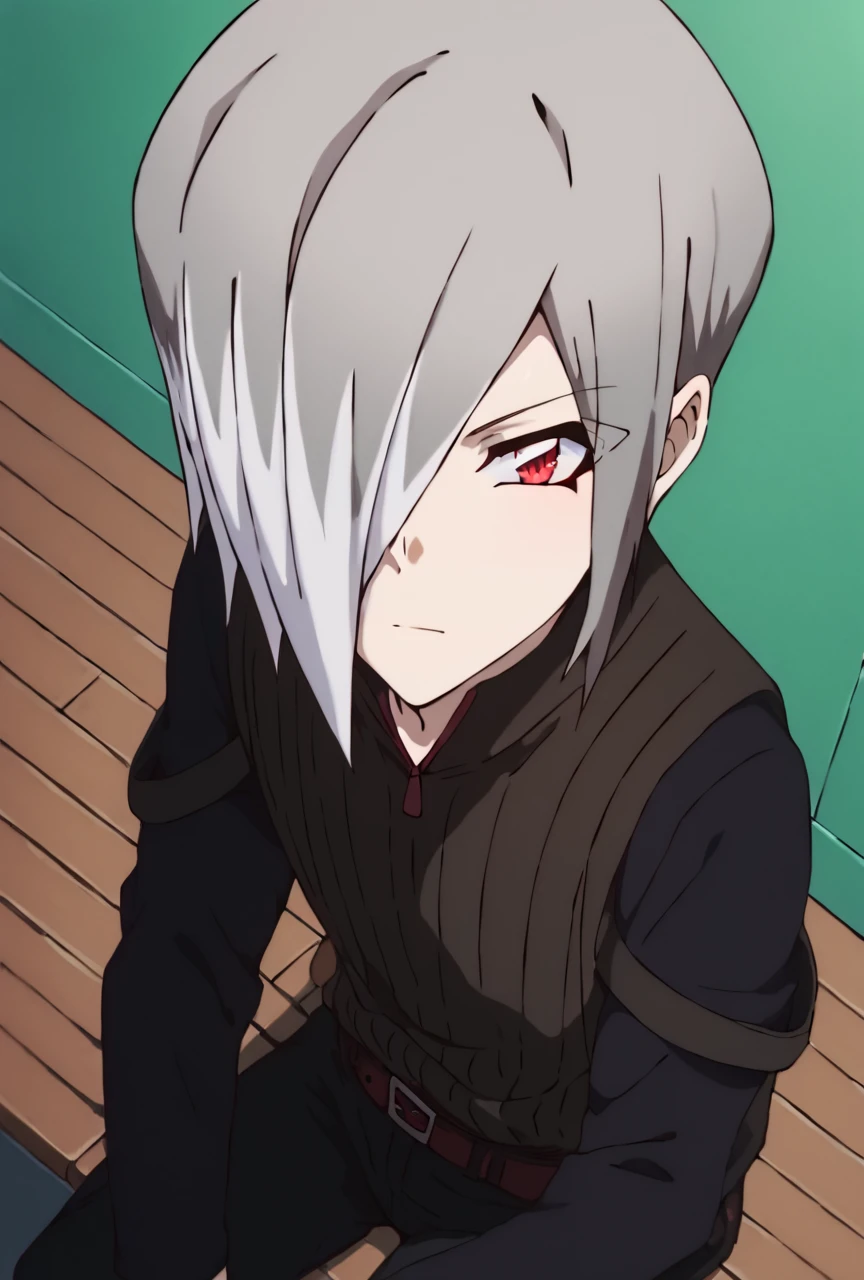 Seiryu,grey hair,red eyes,multicolored hair,hair over one eye,