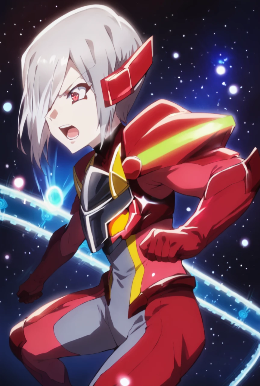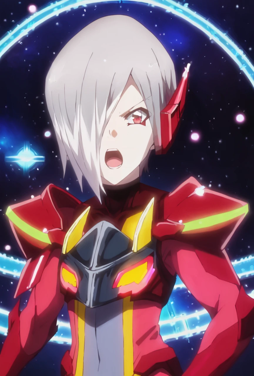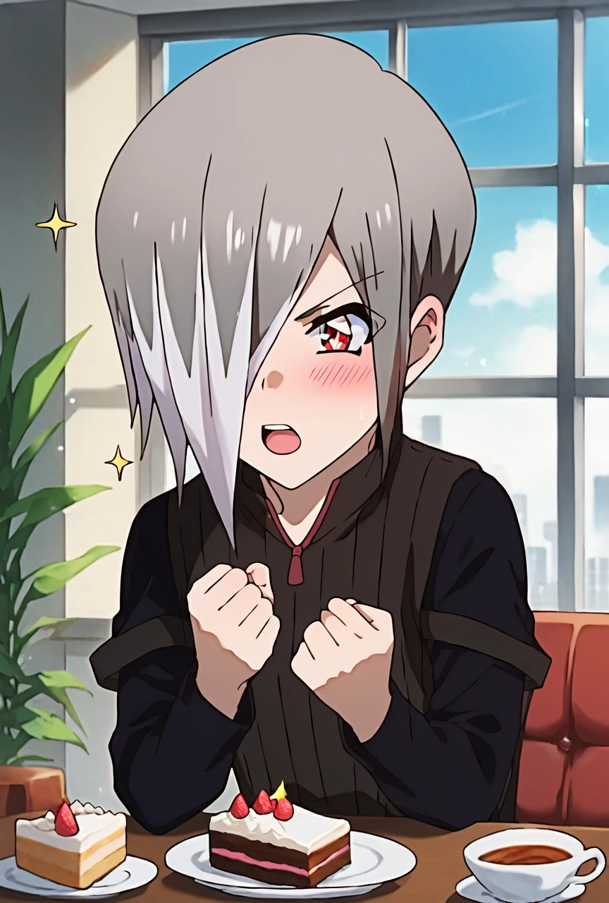 Seiryu,grey hair,red eyes,multicolored hair,hair over one eye,