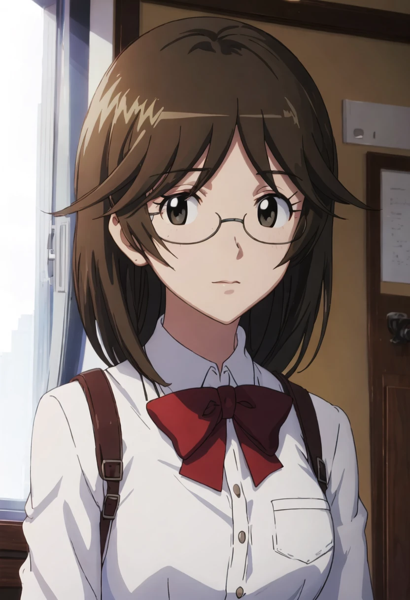- The pruned character tags are brown_hair, glasses, brown_eyes, bow, short_hair. You can add them into prompts when core features (e.g. hair color) of character is not so stable.