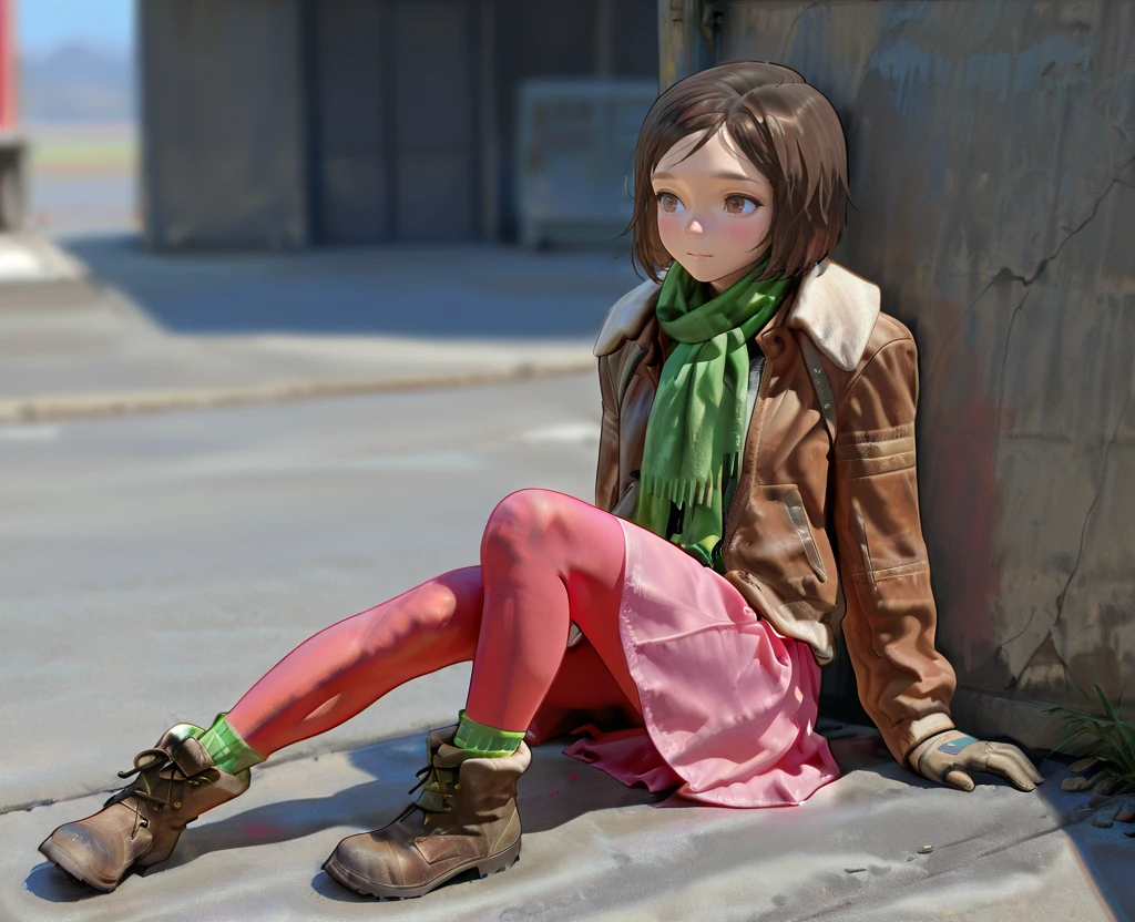NatWright, Fallout4, 1girl, solo, brown hair, short hair,