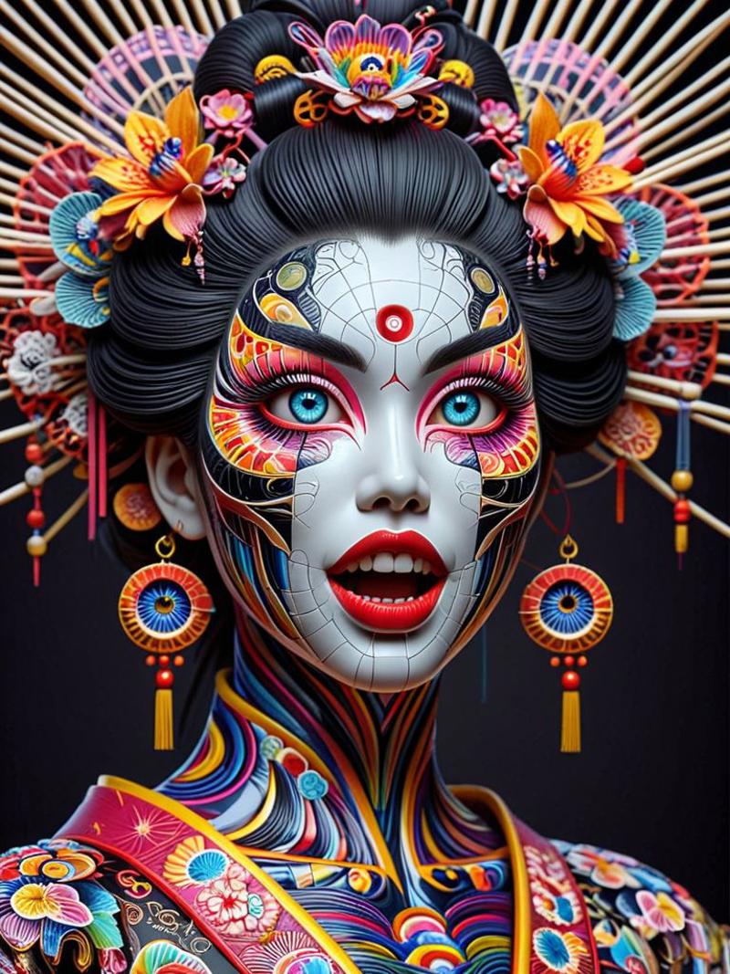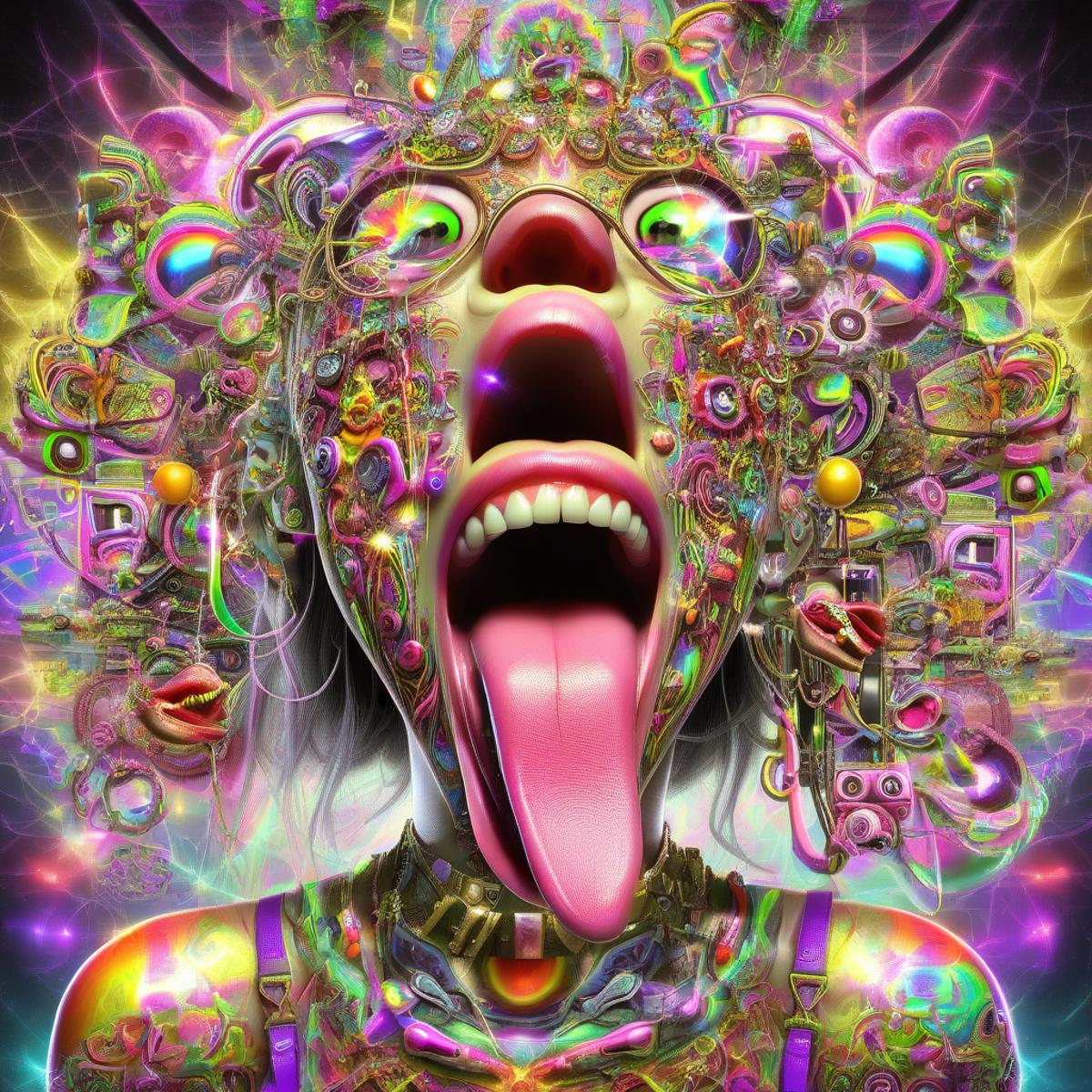 no need for sophisticated prompts such as helios, geisha, eyes, mouth, teeth, psyche, colorful and so on is enough to create surreal psychedelic stuff. at least it works for me.