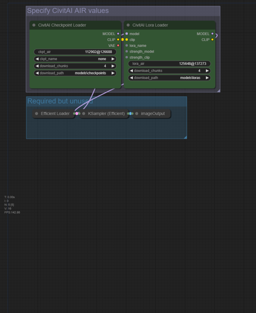 As I'm spending more time in ComfyUI, I thought it would be useful to have a simple workflow that has the minimum required nodes to download a model based on its AI Resource Identifier (AIR) code.
