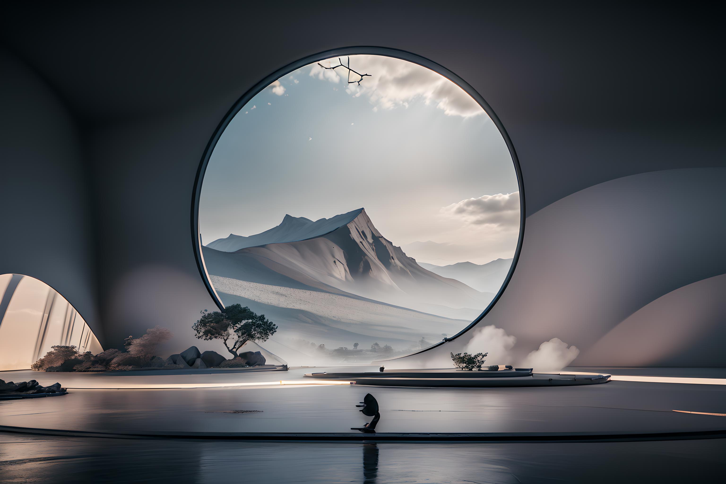 常用提示词:CGphotobuilding bsw, no humans, scenery, reflection, tree, sky, blue theme, cloud, outdoors, reflective floor, water, cherry blossoms,circular structure,door,  window, architecture, building, east asian architecture, stairs, still life, bare tree, table, indoors, sceneryletterboxed, day, city, ground vehicle, lamppost, house