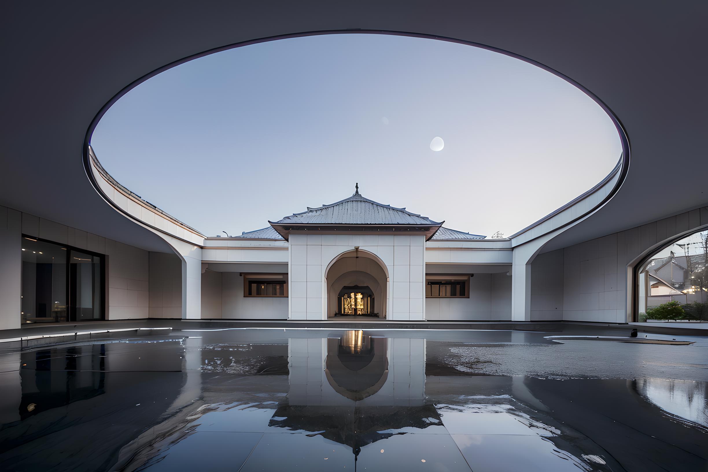 1,模型简介,这是一个关于写实风格的新中式建筑摄影Lora模型,在调用触发词后能够展现建筑场景