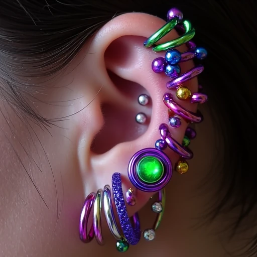 high-resolution close-ups of heavily pierced ears
