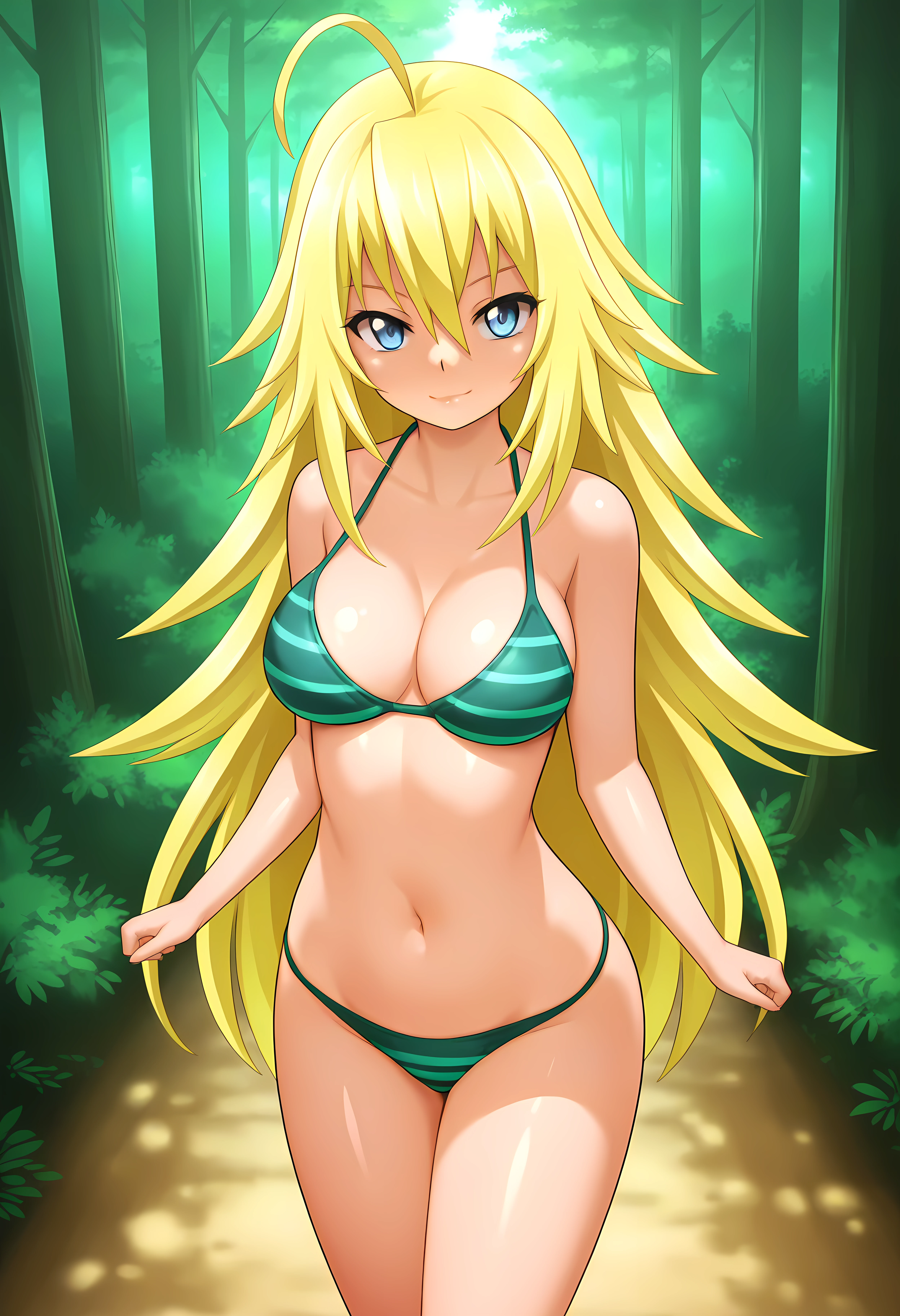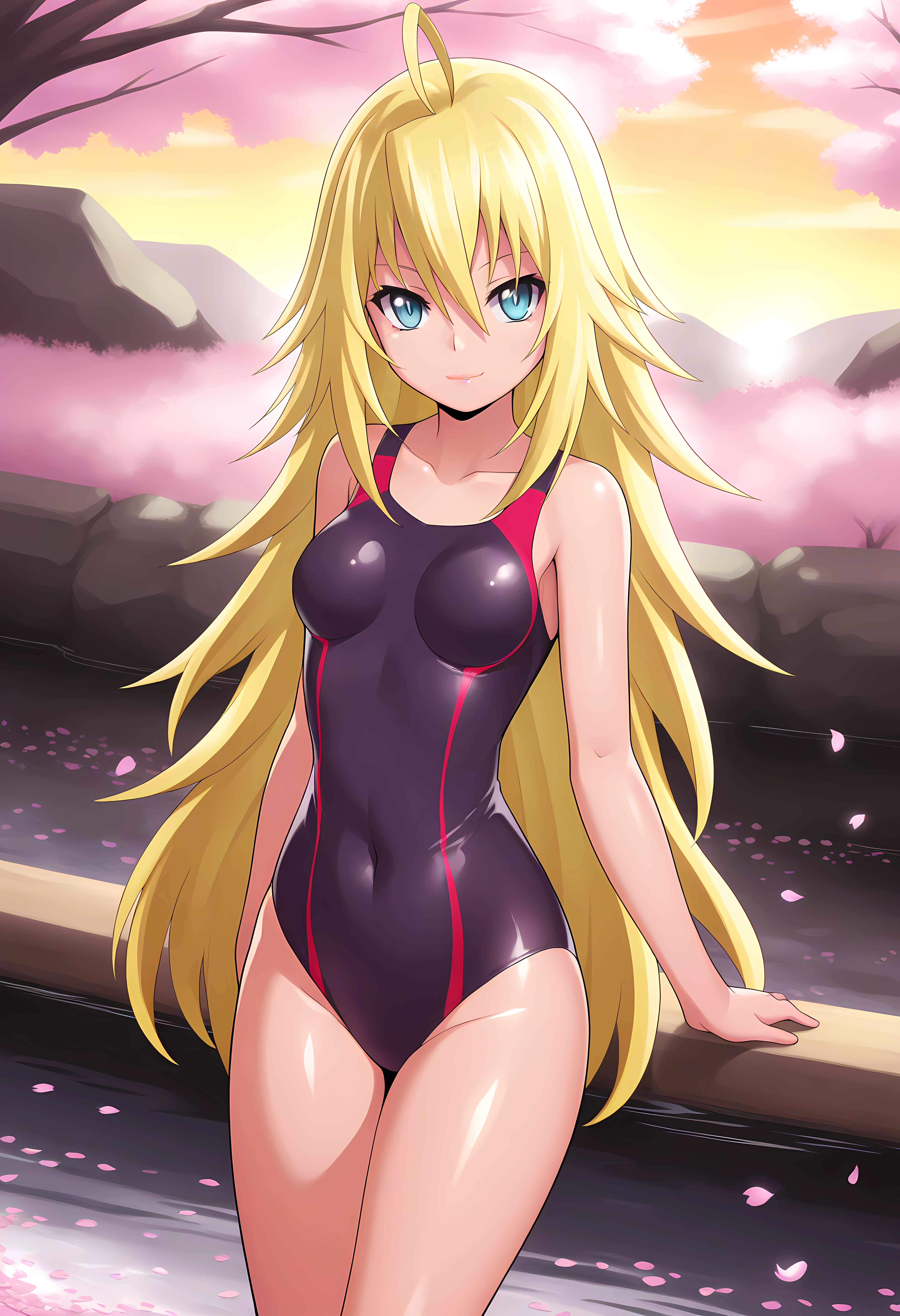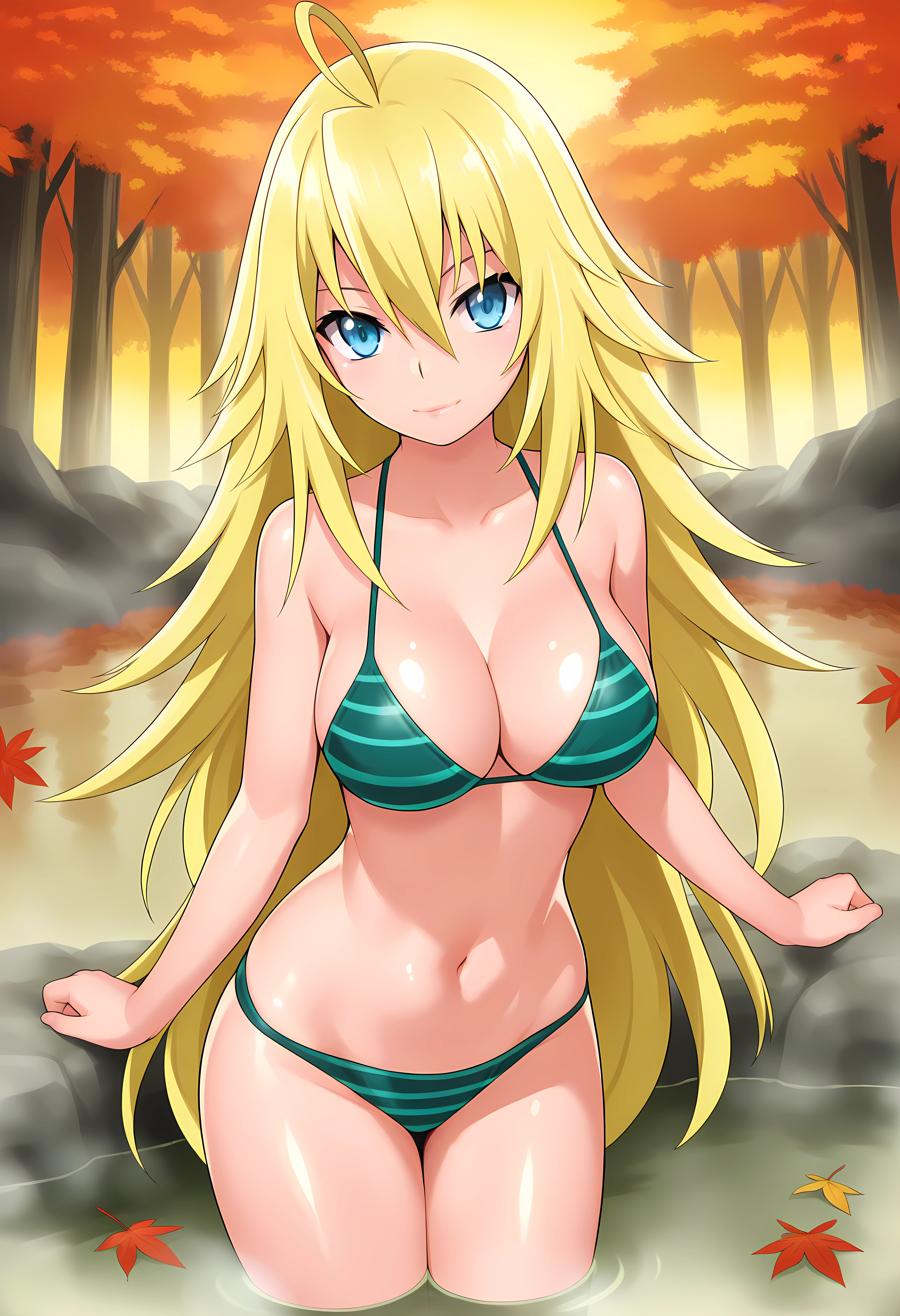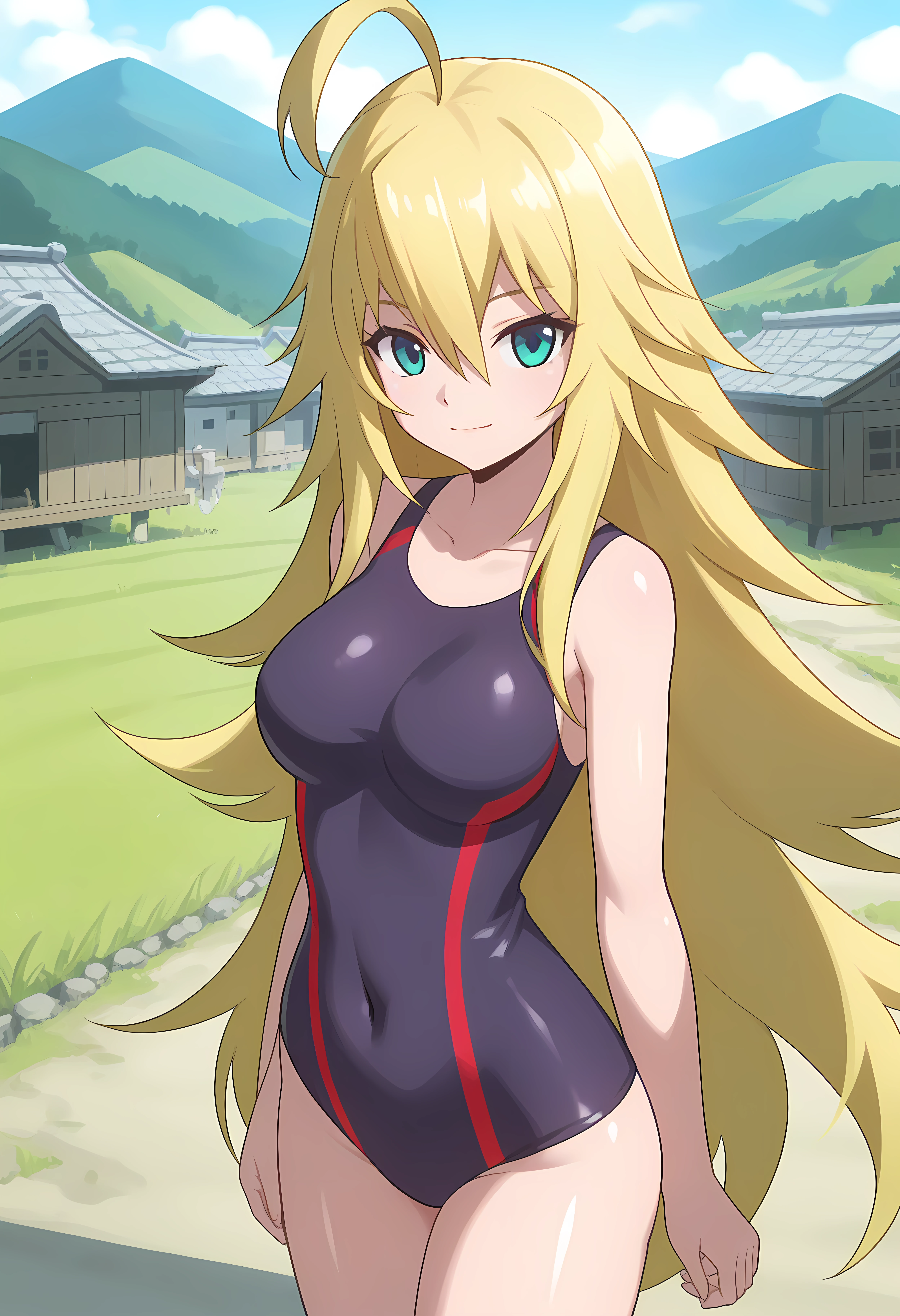 Appearance → ohwx, blonde_hair, long_hair, 1girl, breasts, ahoge, blue_eyes, large_breasts, hair_between_eyes, very_long_hair,