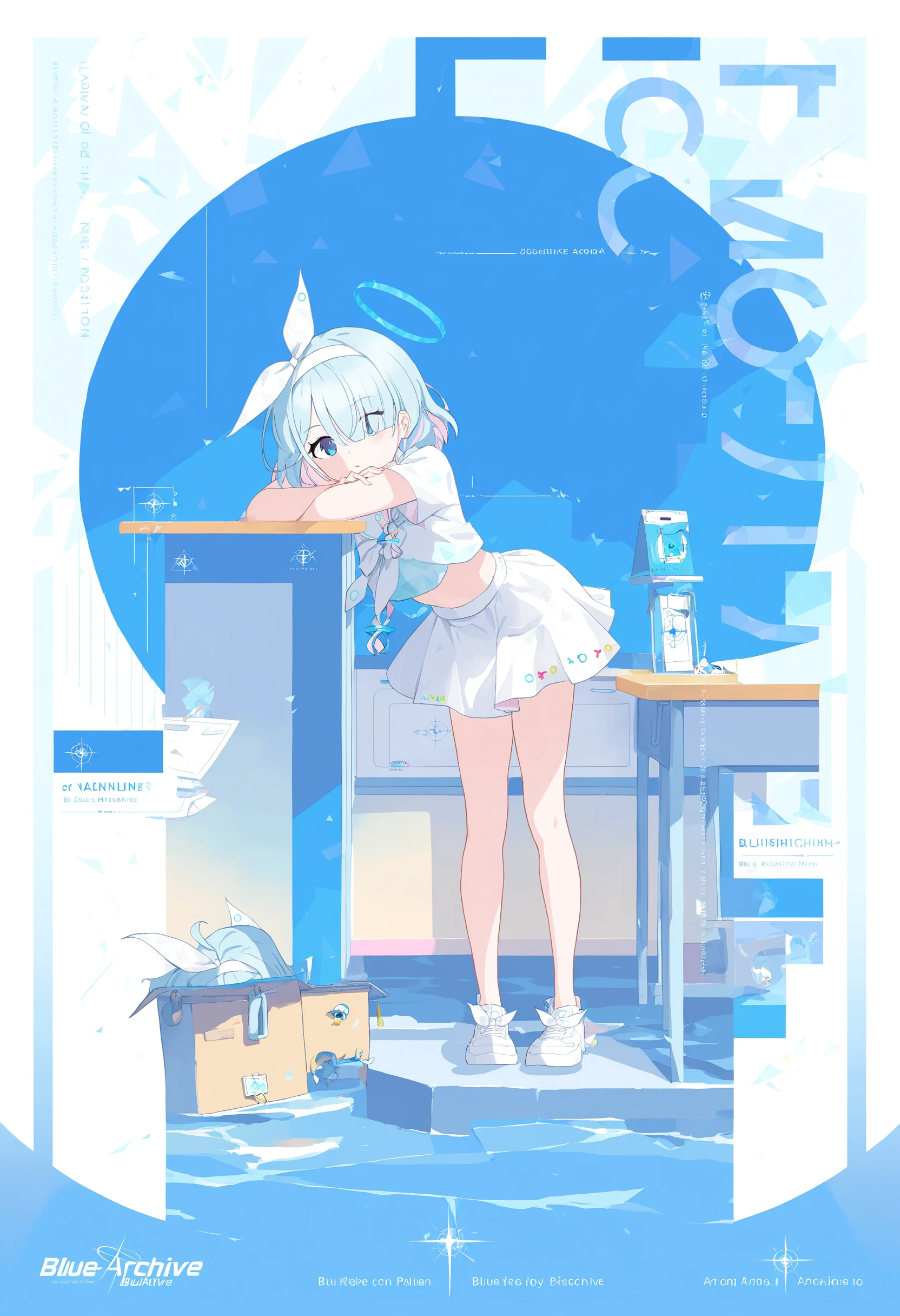 cover,geometric background,Dojinshi,Main vision,Sense of form,planar composition,Graphic Design, masterpiece,best quality, very awa, newest, highres, absurdres, arona \(blue archive\),1girl,solo,upper body,cute pose,pointing,looking at viewerDescription
