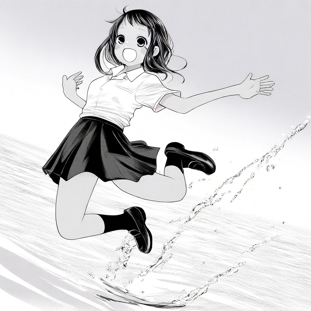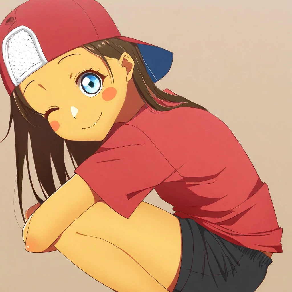 hina_kyan, brown hair, blue eyes, blush stickers, tan skin