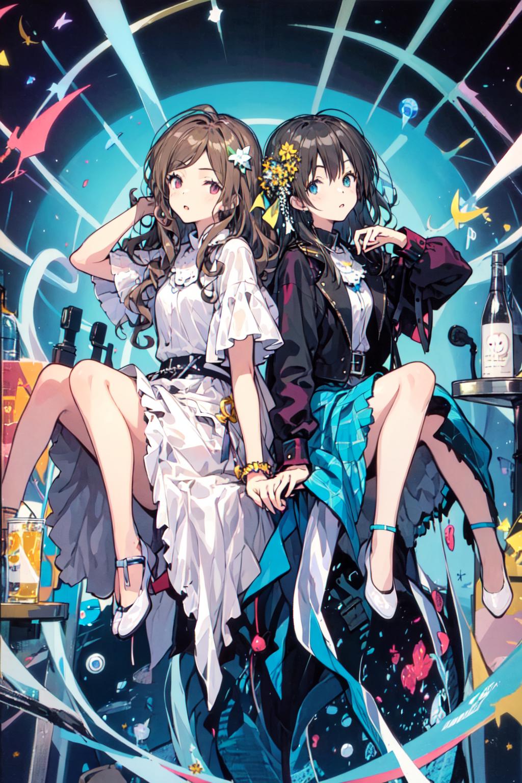 You can also try the prompt "claris", which can generate the Anime style characters of the duo Claris. But this is not intended to be a character LoRA, and SD 1.5 has some inherited problems with 2-person images. So the results are not stable.
