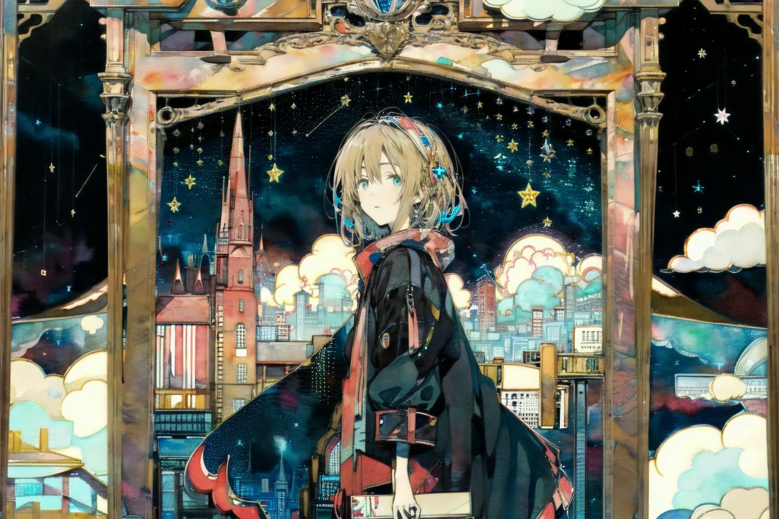 失败作,没能很好地还原风格。最明显的差别是生成的画面细节过多,难以重现画师许多原创插画中那种童话般的氛围。