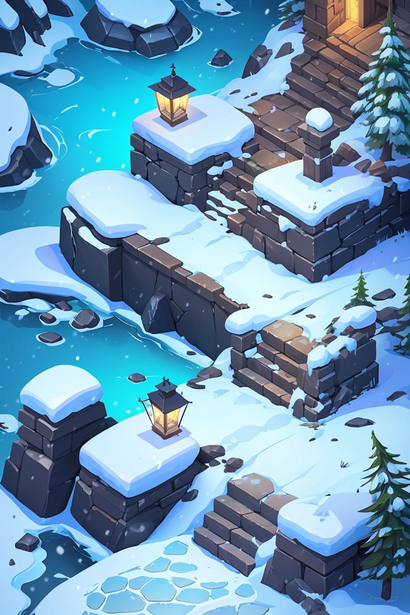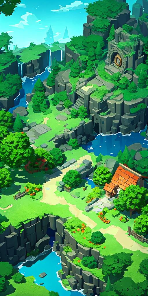 This is a game scenario lora that generates different landscapes, snow, desert, Gobi, forest, lake, garden, volcano, island