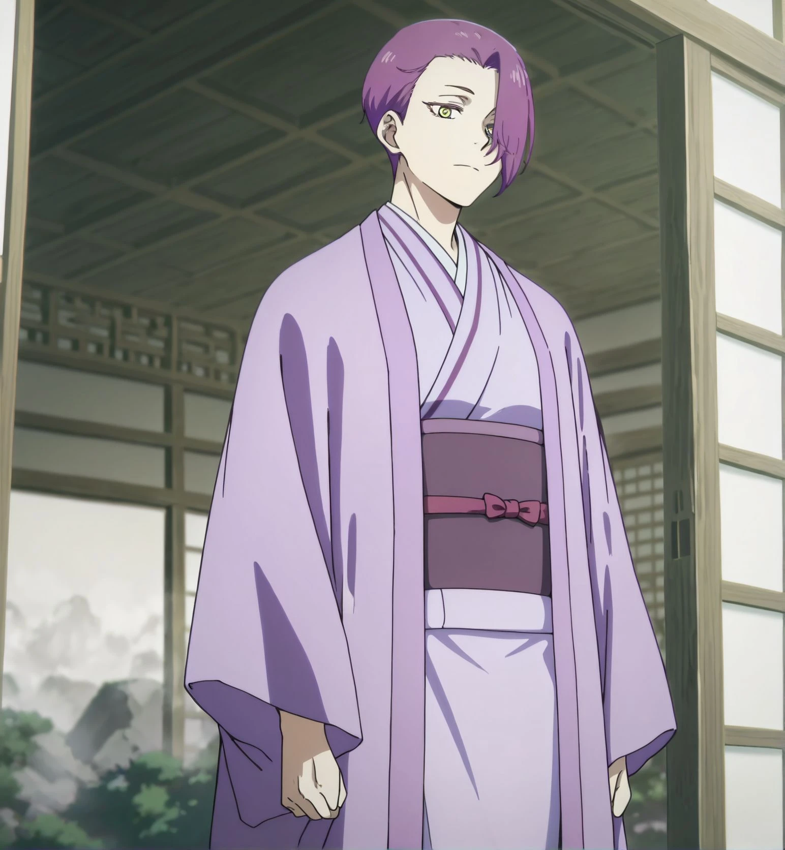 purple hair,short hair,purplr kimono,haori,