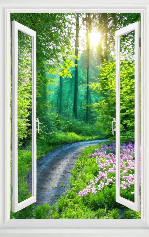 Using the prompt "window", generate a random scenery outside the window. This can be used as wallpaper and will help you start your day with a positive mood.