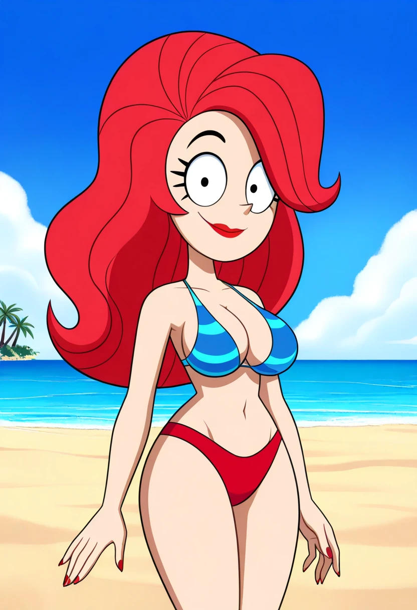 1girl, frankarella, red hair, long hair, red lips